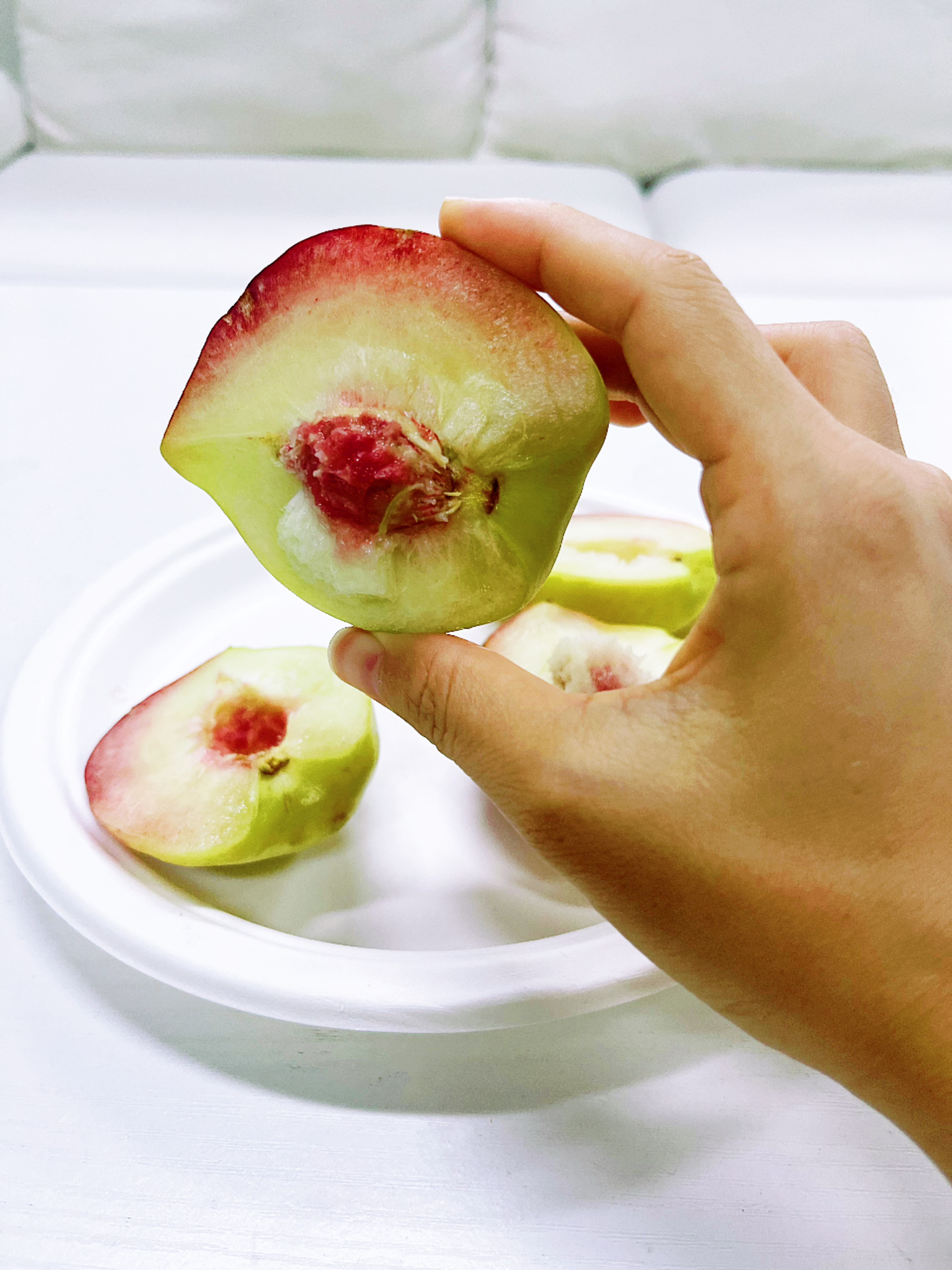 【特色】翁源鹰嘴桃,大家说的九仙桃。成熟的桃子的颜色红色伴着青白色, 红色越多越成熟。果甜,无酸,果味是纯甜的,果肉脆软适中,微红透白。清新果味,吃起来不腻。果园基地现摘现发,广东省内包邮。