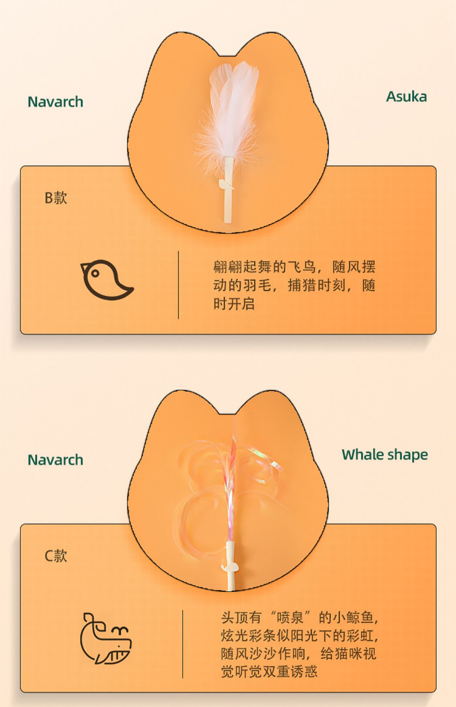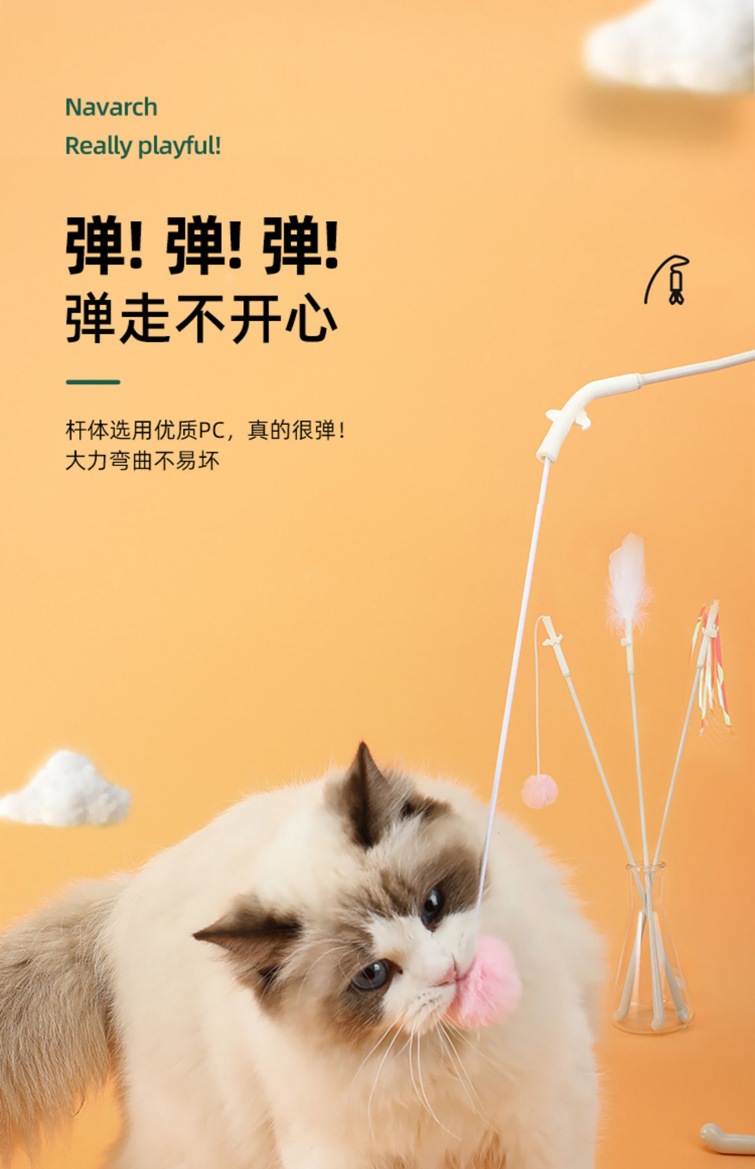 耐威克宠物玩具|逗猫棒|猫咪解|闷耐咬羽毛|增进感情|仙女棒|猫咪自嗨玩具