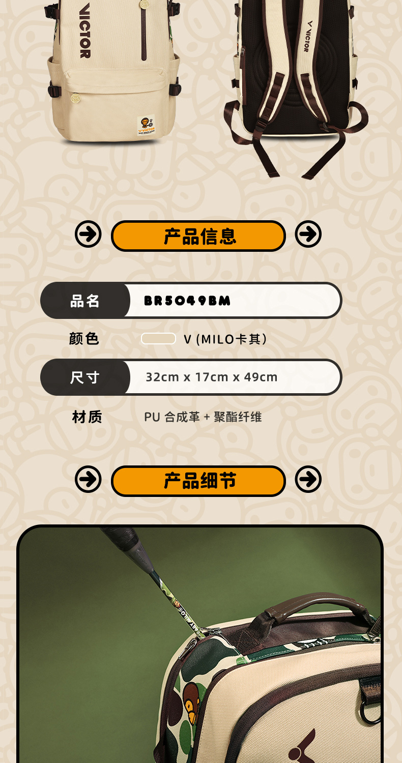 威克多胜利 羽毛球包 BM联名系列 双肩包 BR5049BM