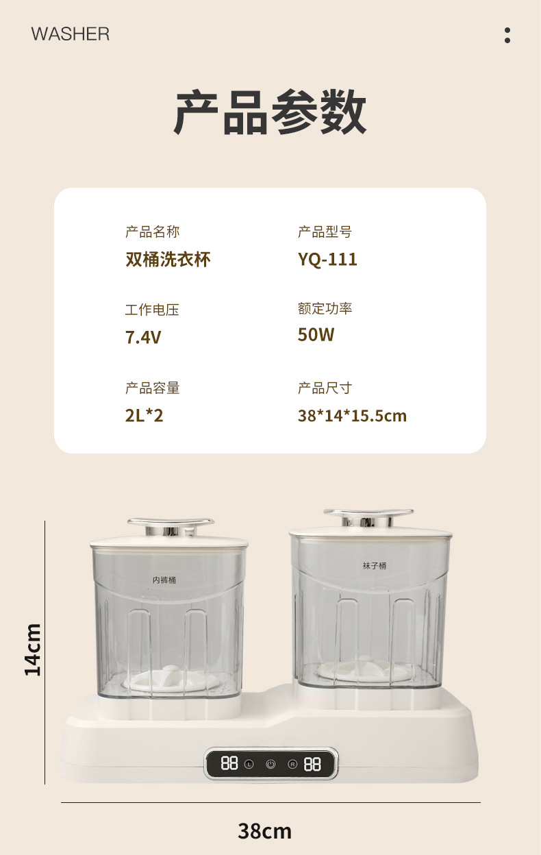 【品名】敏煌 双桶内衣内裤袜子洗衣杯 蓝光深层洁净 双舱同洗 超长续航 迷你便携 【规格】米色 机器尺寸:长38cm 宽14cm 高25.5cm 线长:80cm 重量:1.75kg左右 排水管:50cm长 电池容里:2000mAh 【产地】国内 【发货包装】独立包装 【发货地】温州 【发货快递】顺丰、中通、圆通、邮政随机发 【不发货区域】新疆、西藏、港澳台 【发货时效】48-72小时,周末节假日顺延 |