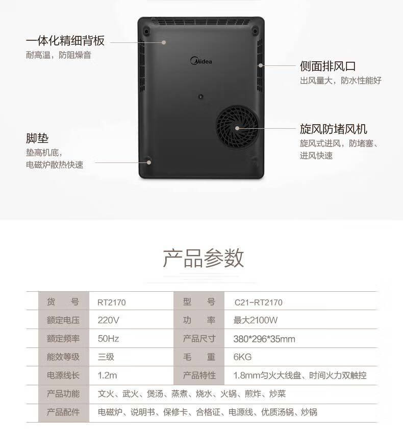 美的(Midea)RT2170电磁炉 家用2100W大火力文武火 电磁灶四重防水智能定时
