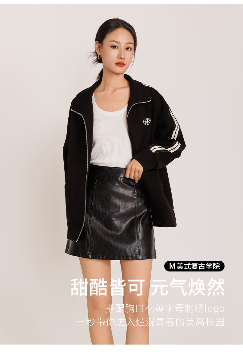 weyo男女同款空气层美式复古装饰织带卫衣外套771090 商品图0