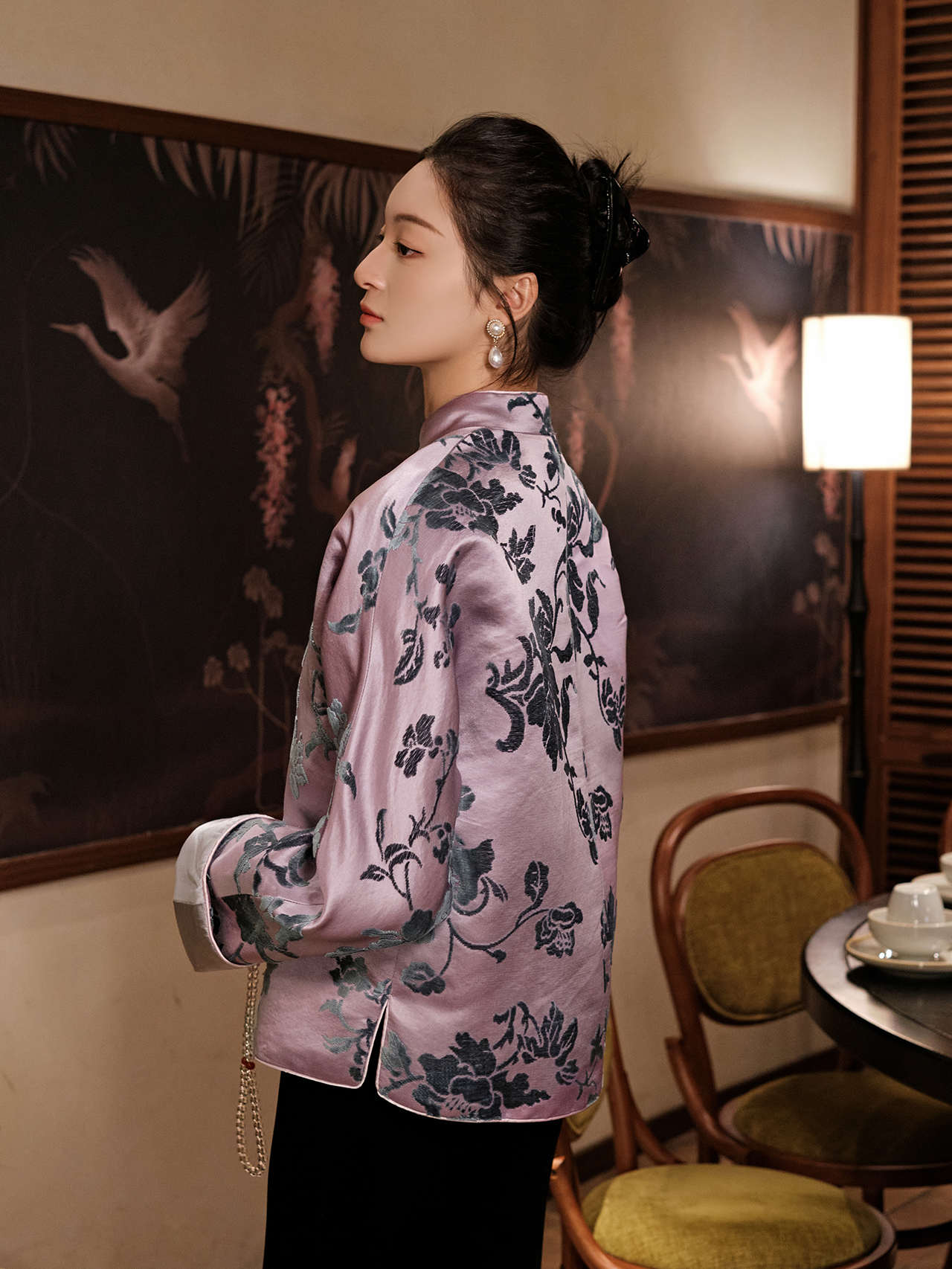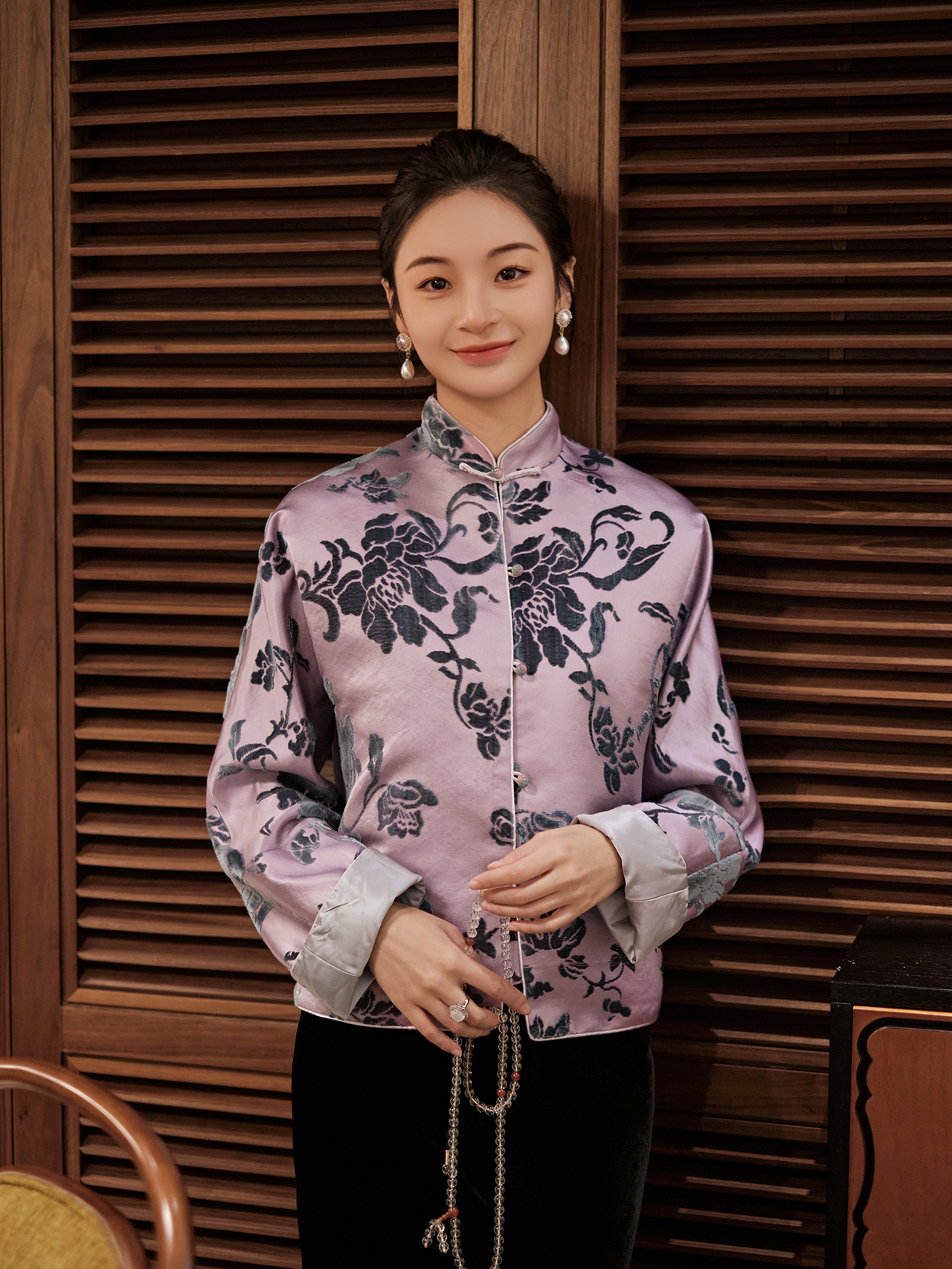 盛唐牡丹|凤信紫富贵牡丹漳缎外套-钉珠款