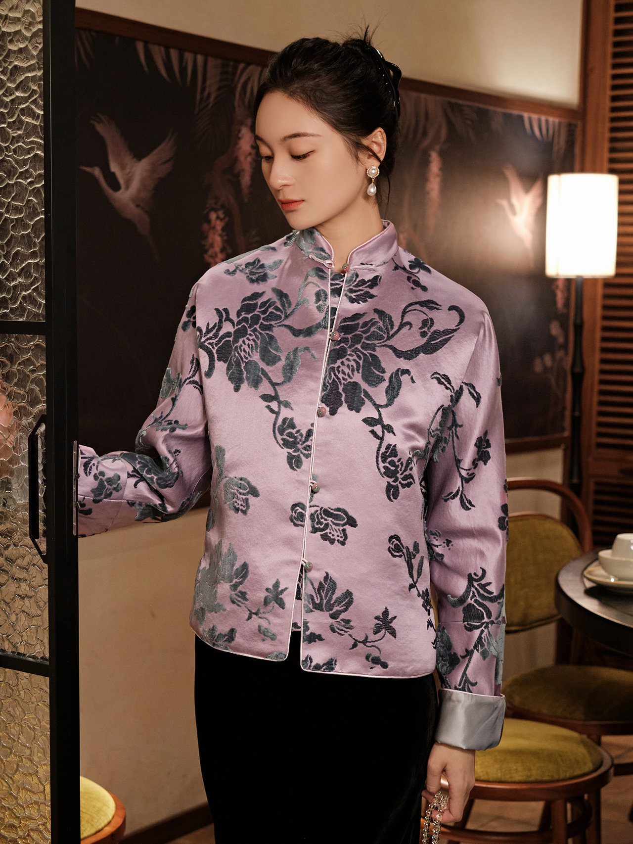 盛唐婧 |桃夭粉新中式国风提花上衣