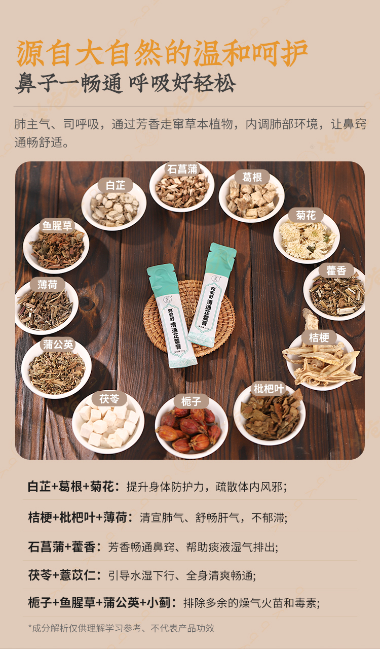 【甄选】清通芷藿膏植物精粹舒鼻呵护家庭常备180g(10g*18袋)/罐