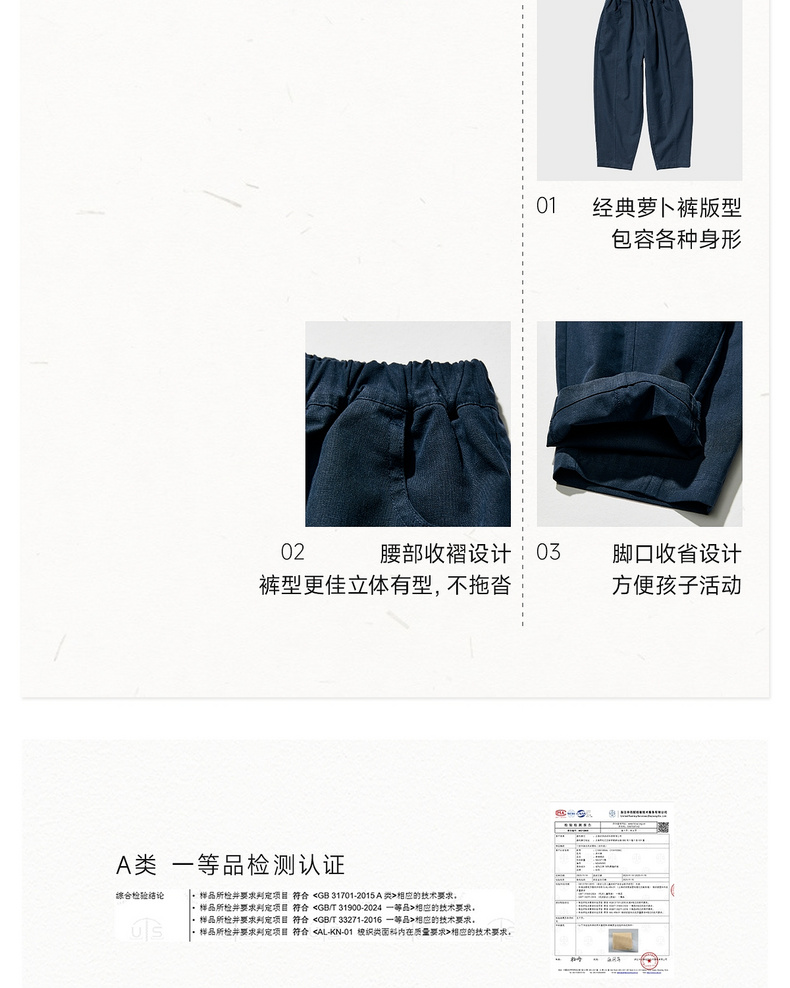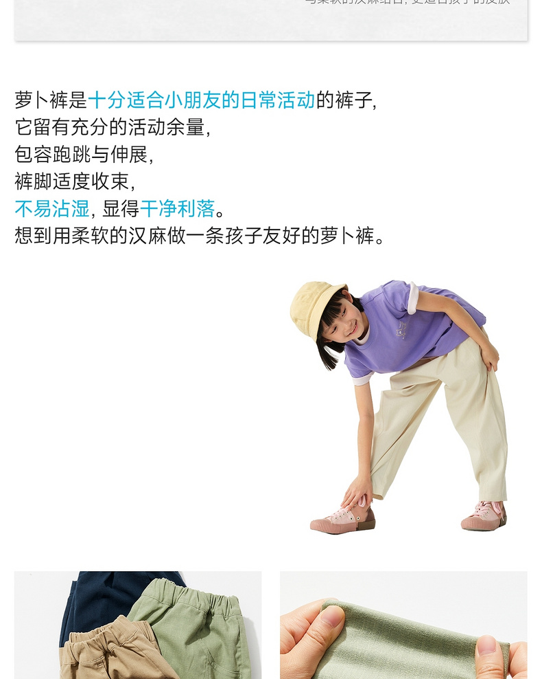 【春Vol.3】allblu幼岚【柔软汉麻 萝卜裤】儿童裤子26春季新品不易皱ZY