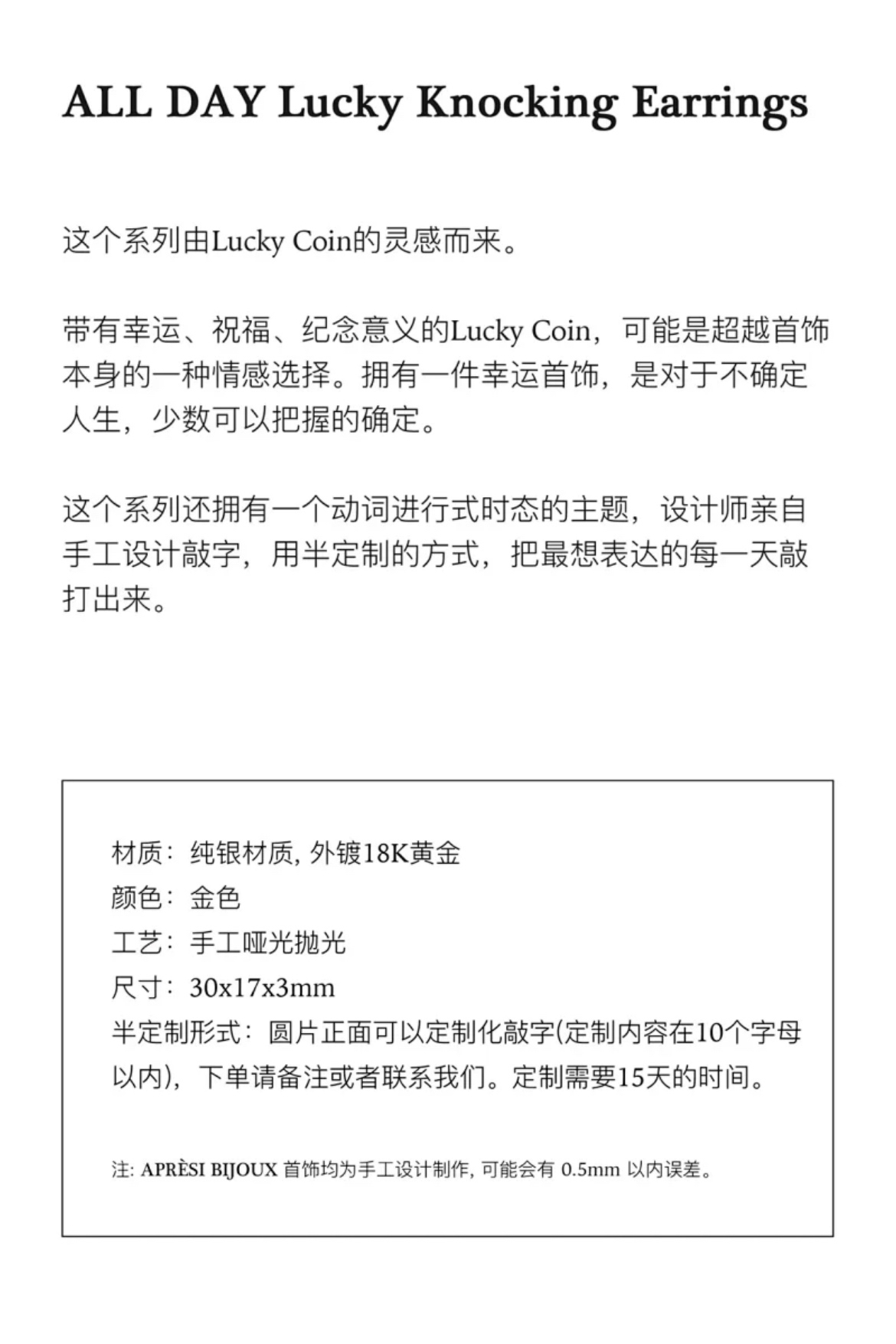 APRESI|ALL DAY Lucky Knocking Earrings [手工敲字幸运耳环 不对称]