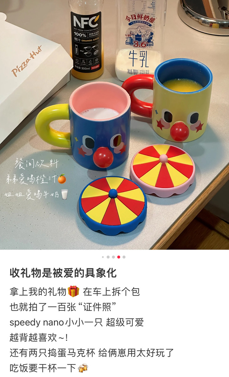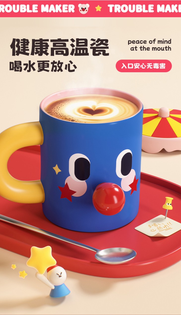 天呐,又双叒被超可爱的杯杯击中,捣蛋陶瓷杯,是红鼻子哎,简直萌到犯规!而且,还有盖子,是可以保温的,又很防尘,超适合公办室喝喝,心情就像瞬间被阳光填满,幸福感爆棚。。。家里有猫猫的,也得来一个,不会被偷喝水了!