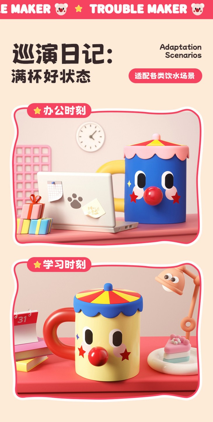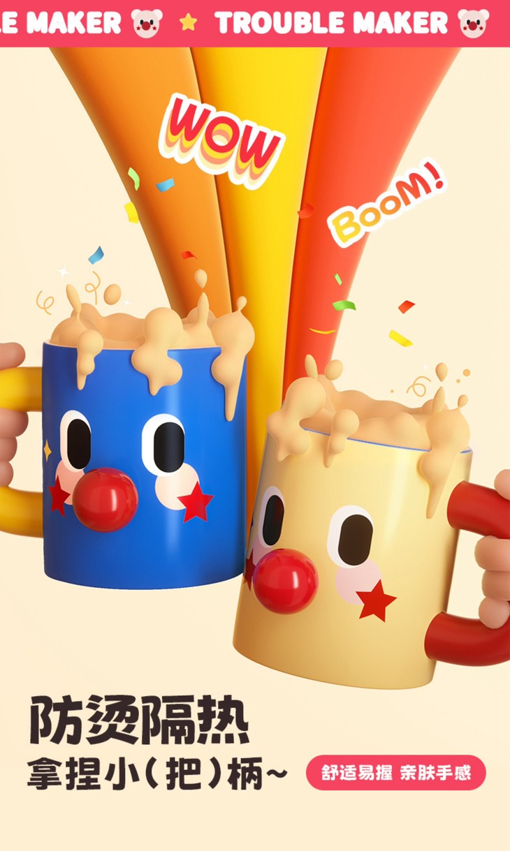 杯杯有黄色的捣蛋魔术师和蓝色的顽皮捣蛋鬼,都萌力值拉满,让人看一眼就挪不开眼!我自己留的是蓝色系,300ml的容量,大小也是恰恰好,能满足我们日常的喝水需求,咖啡也是正好一杯!办公室忙碌工作,课间短暂休息,或是在家慵懒宅着,摸摸红鼻子,都能让喝水变更快乐。。。而且有礼品盒包装和卡片,送男朋友、闺蜜或小朋友,都很可!