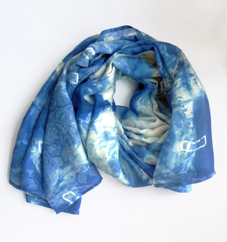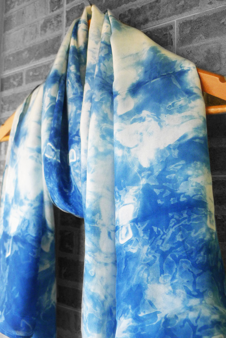 传统古法手染真丝围巾,染料来自于大自然的馈赠,以双手诠释蓝色的文艺优雅。