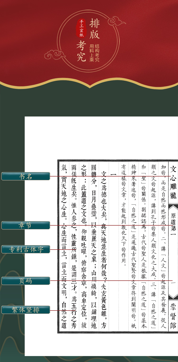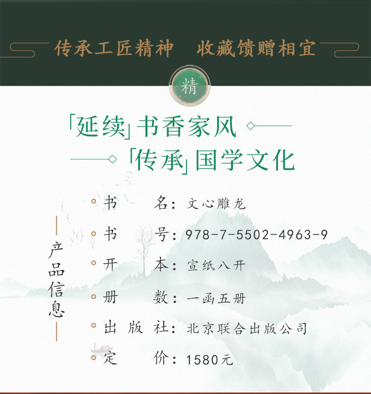 古体本《文心雕龙》 手工宣纸线装繁体竖排(一函五册)