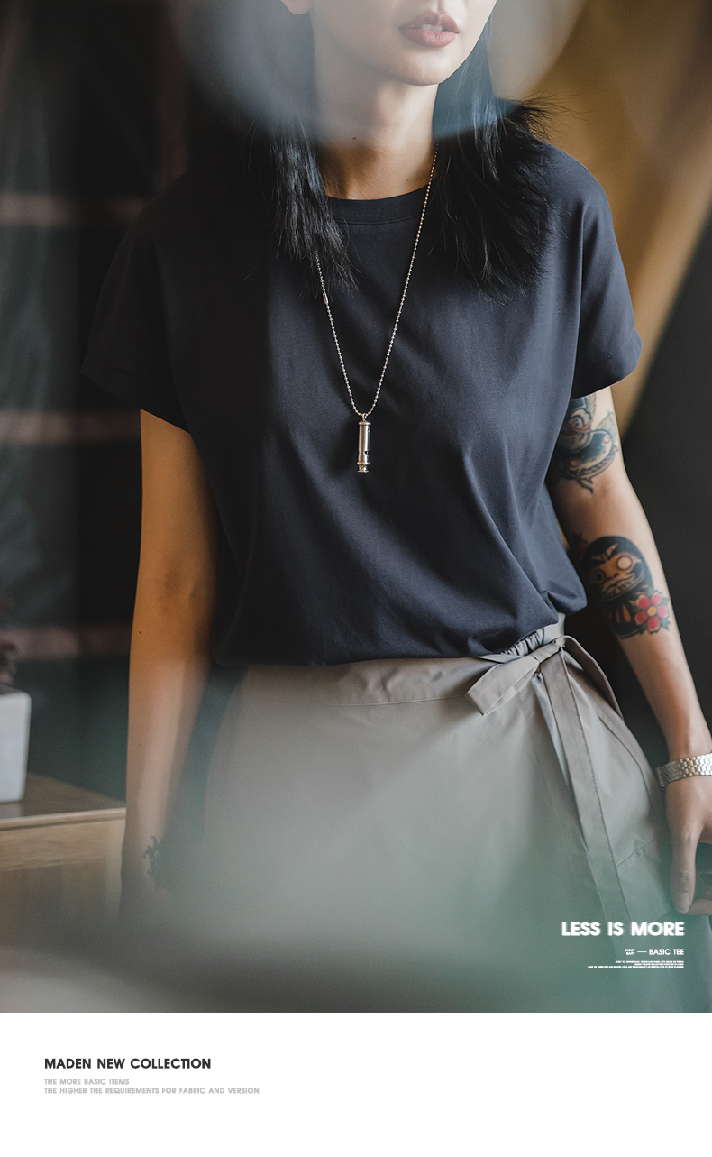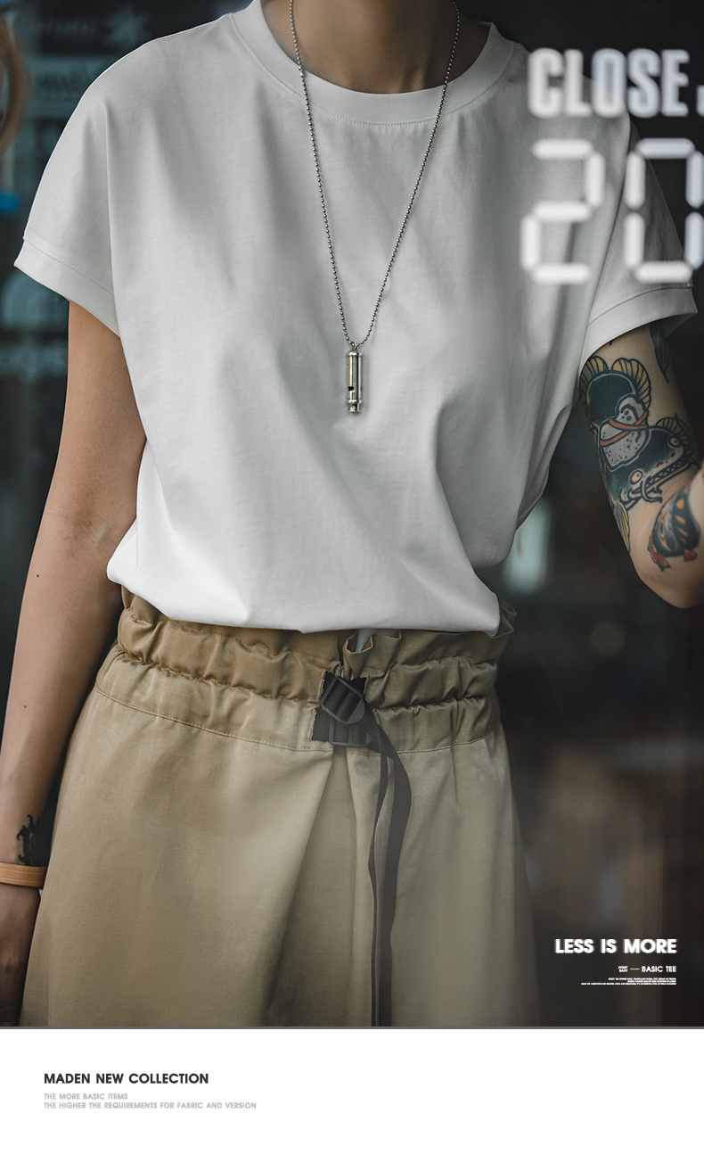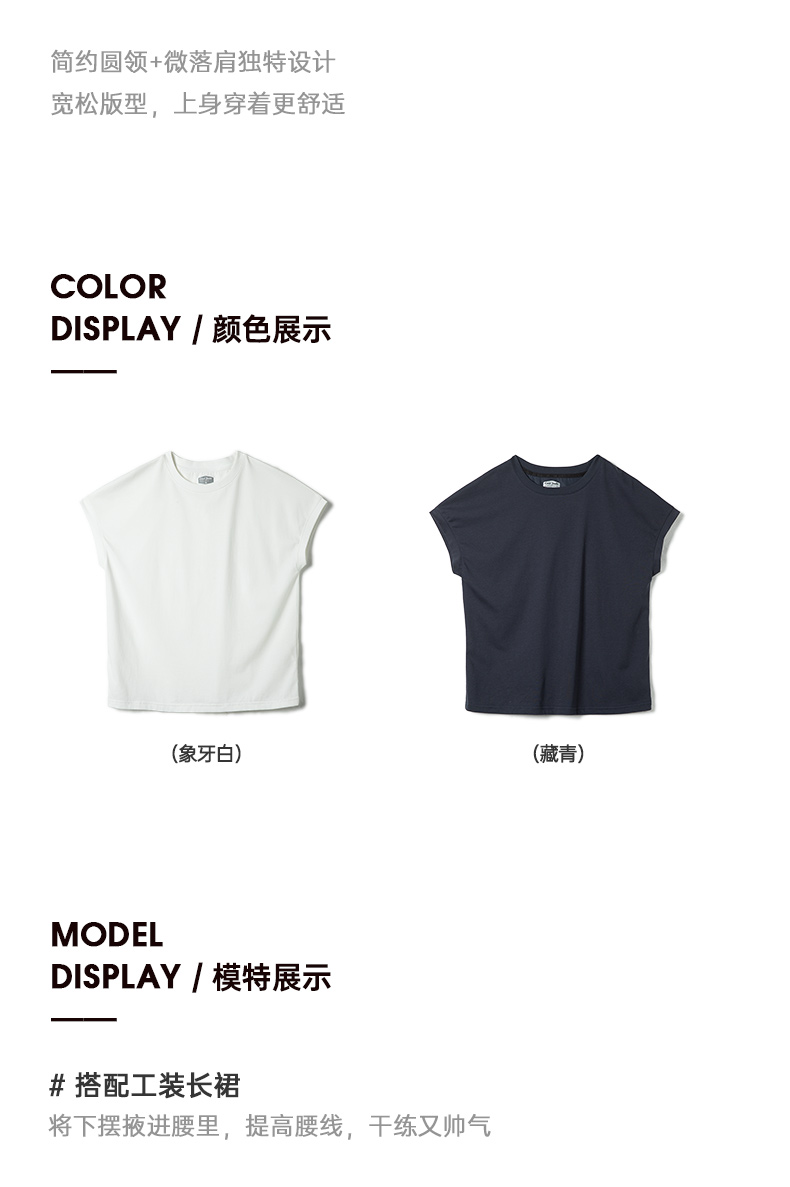 马登女装 冰丝上衣落肩基础短袖夏凉感打底衫薄款宽松圆领体T恤潮