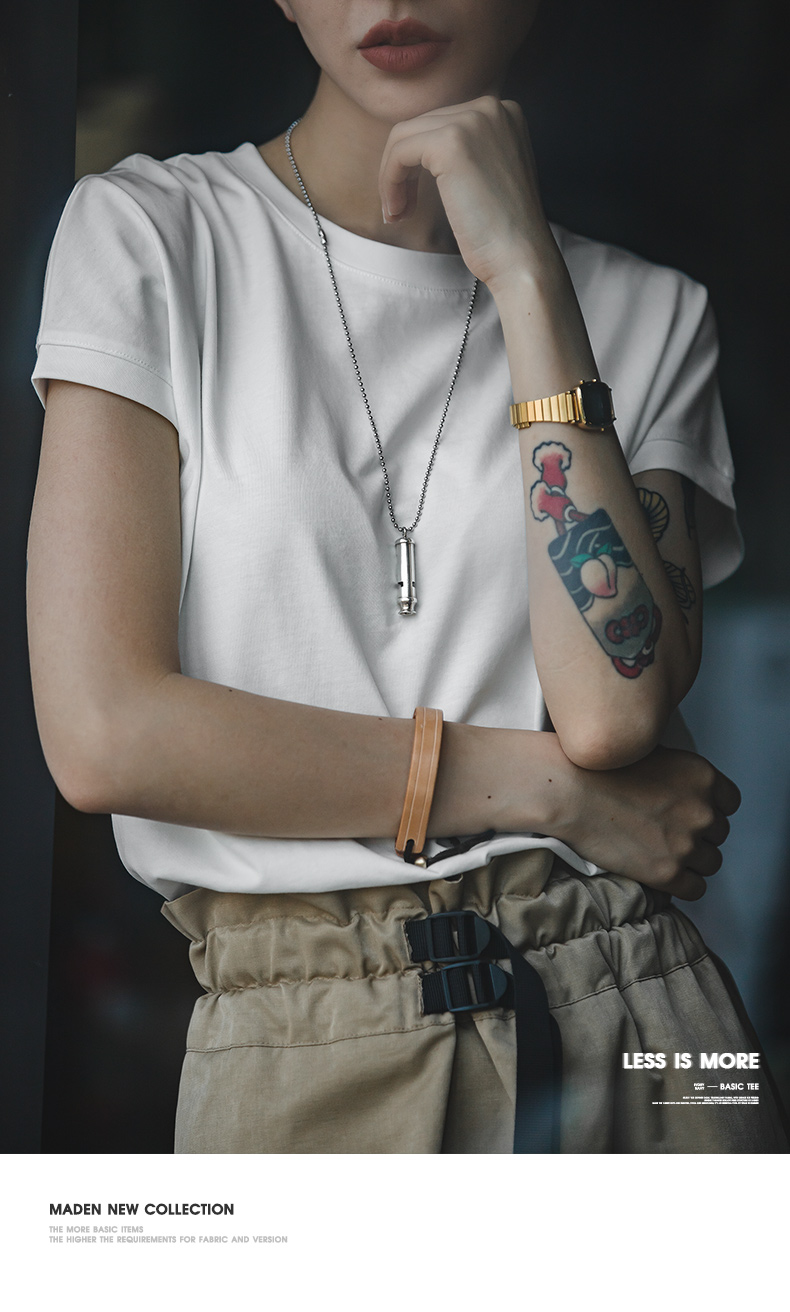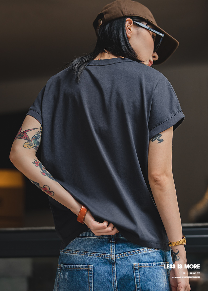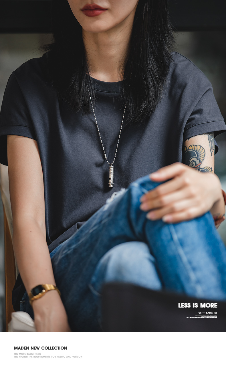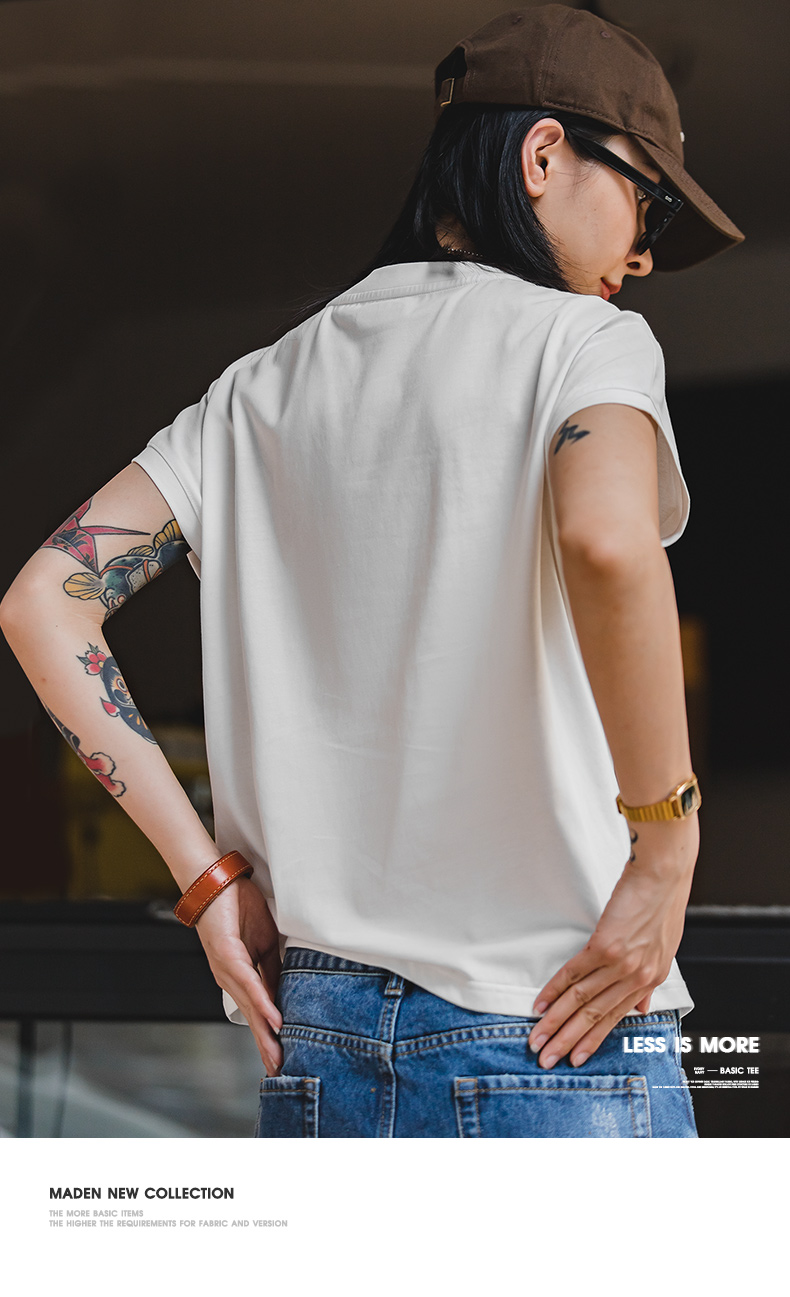 马登女装 冰丝上衣落肩基础短袖夏凉感打底衫薄款宽松圆领体T恤潮