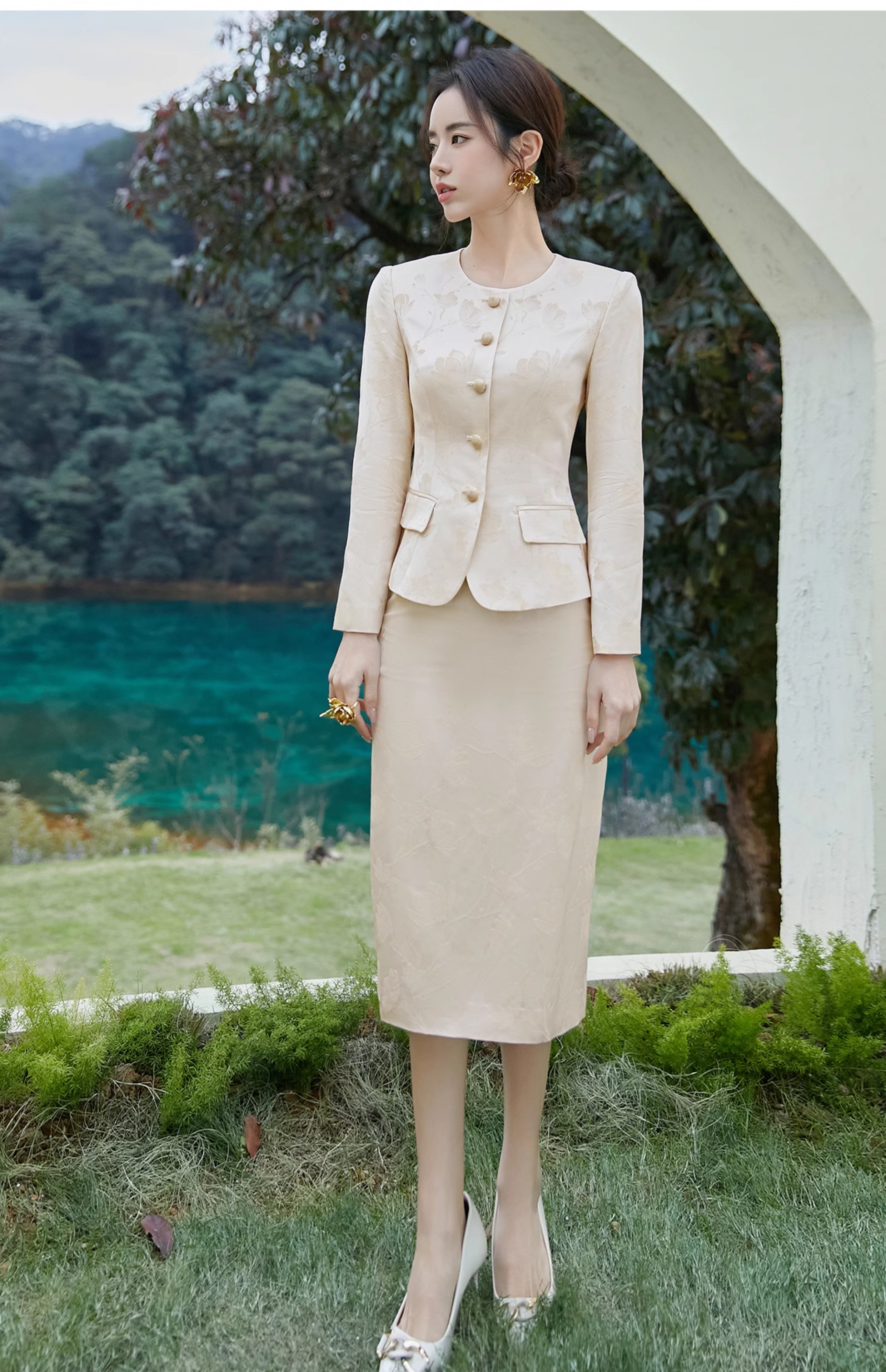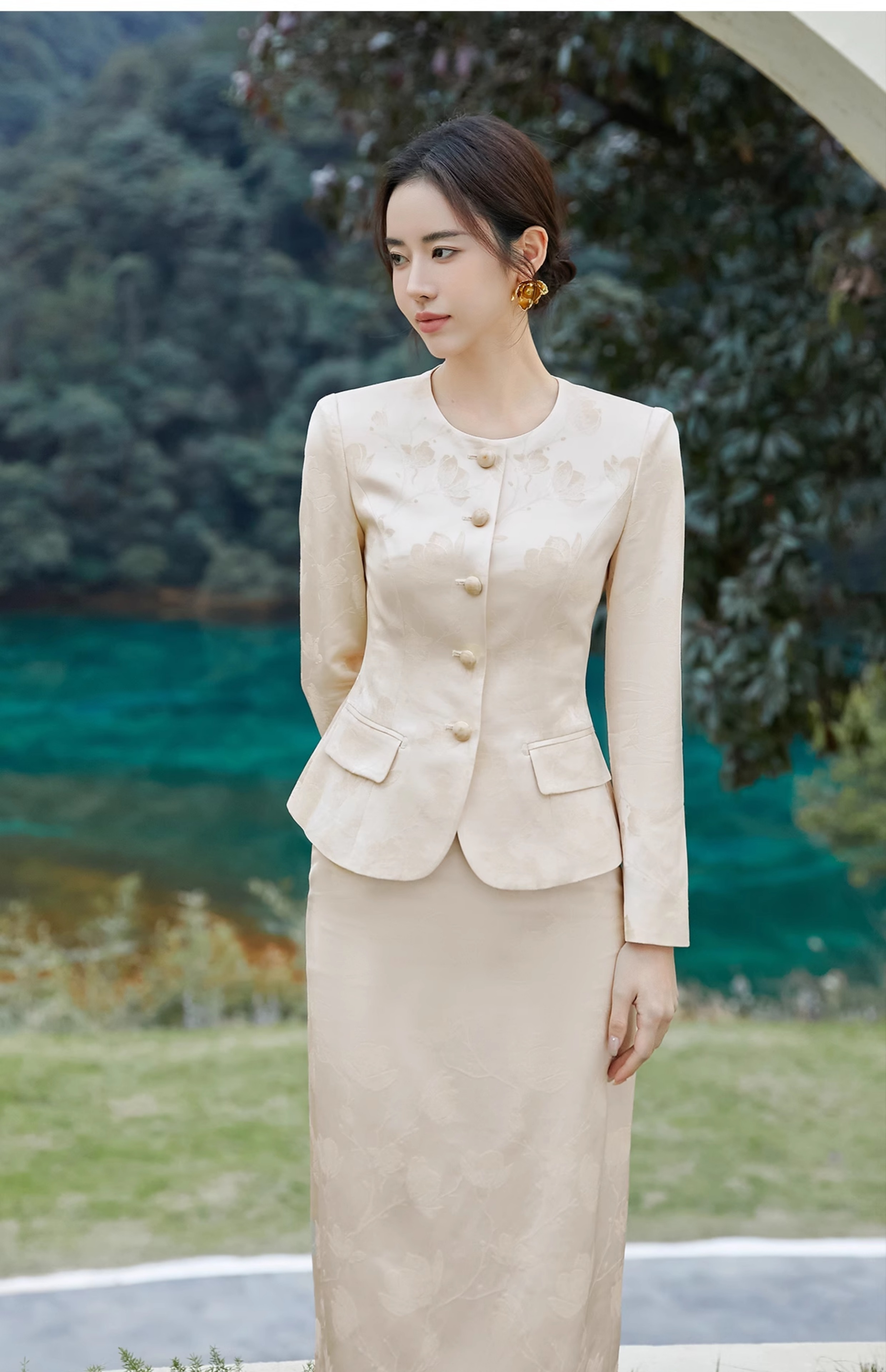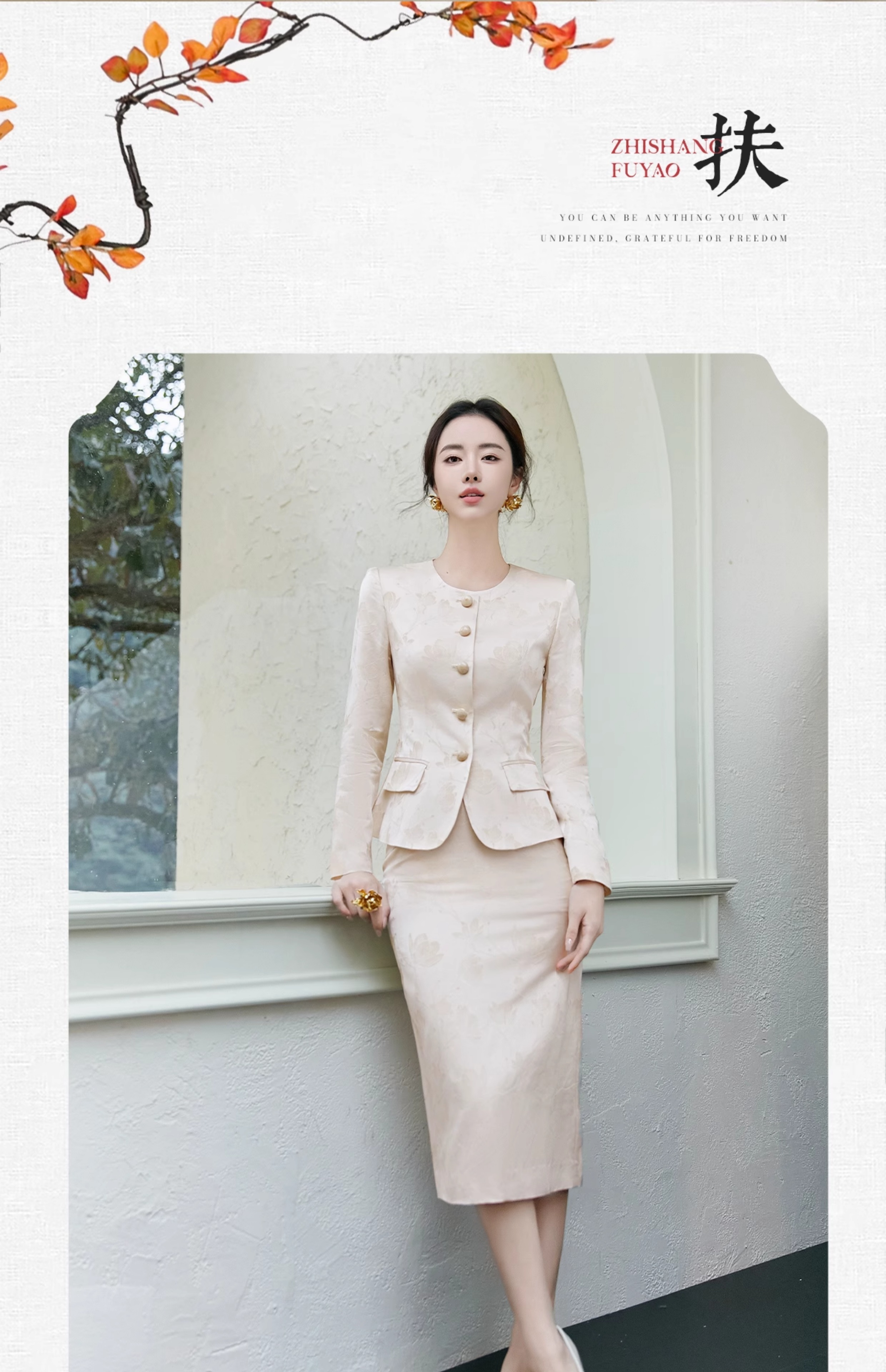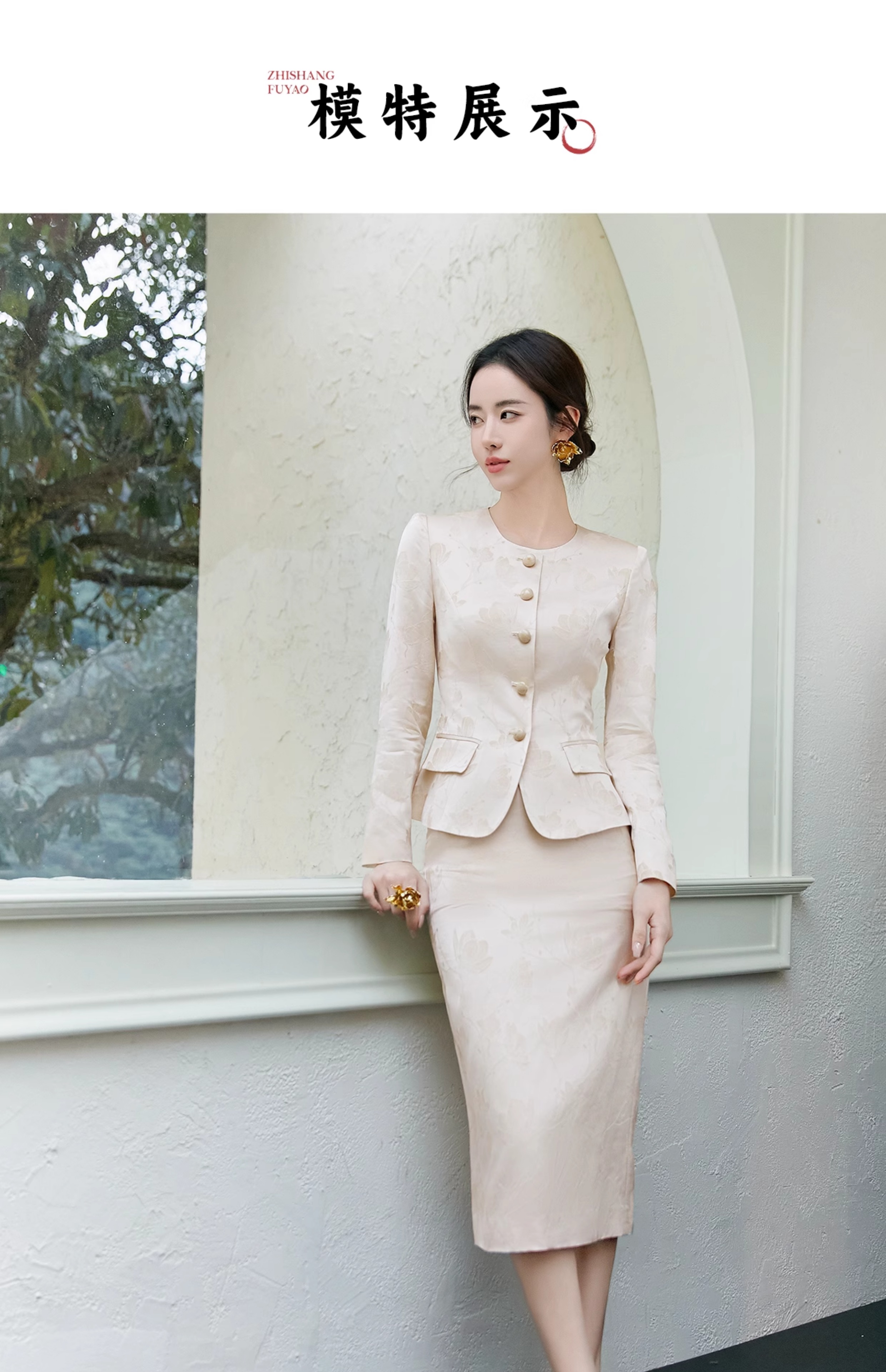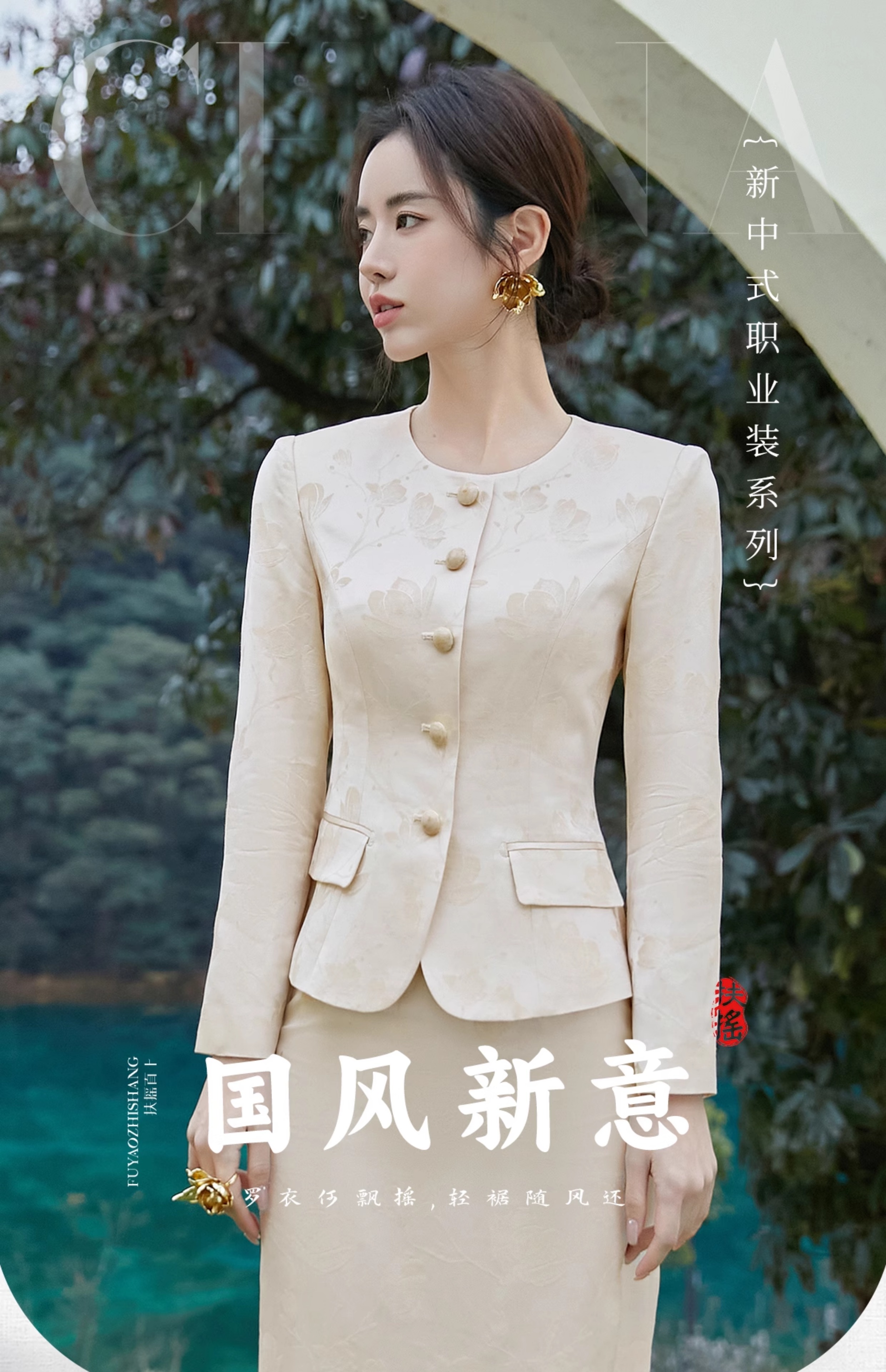 FUYAO扶摇 新中式提花西装外套女2025春季新款气质小香风淑女西服