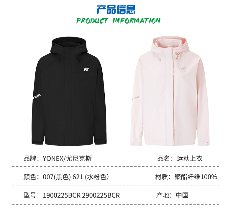 YONEX尤尼克斯羽毛球服连帽外套yy上衣1900225BCR男女款