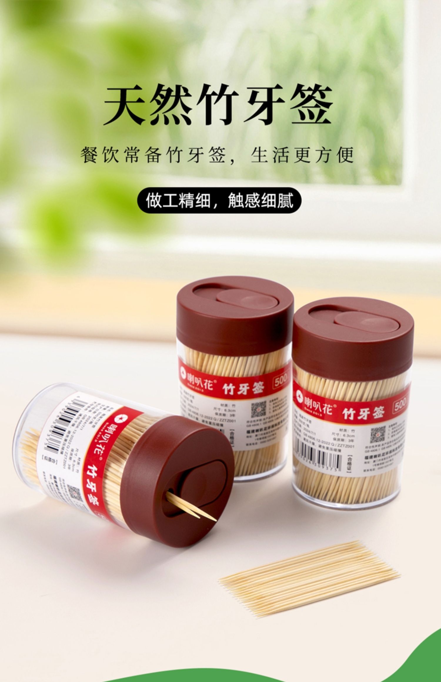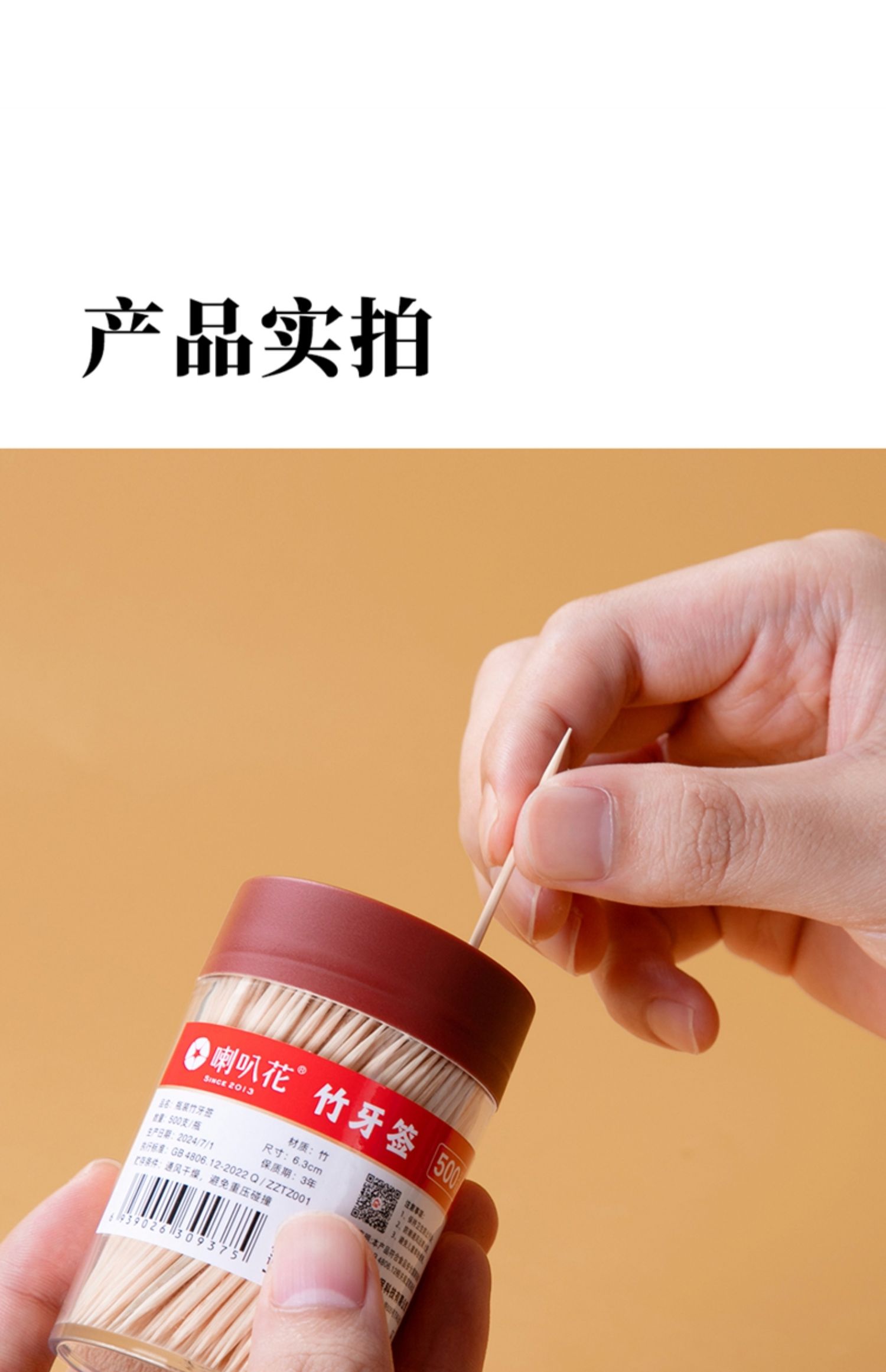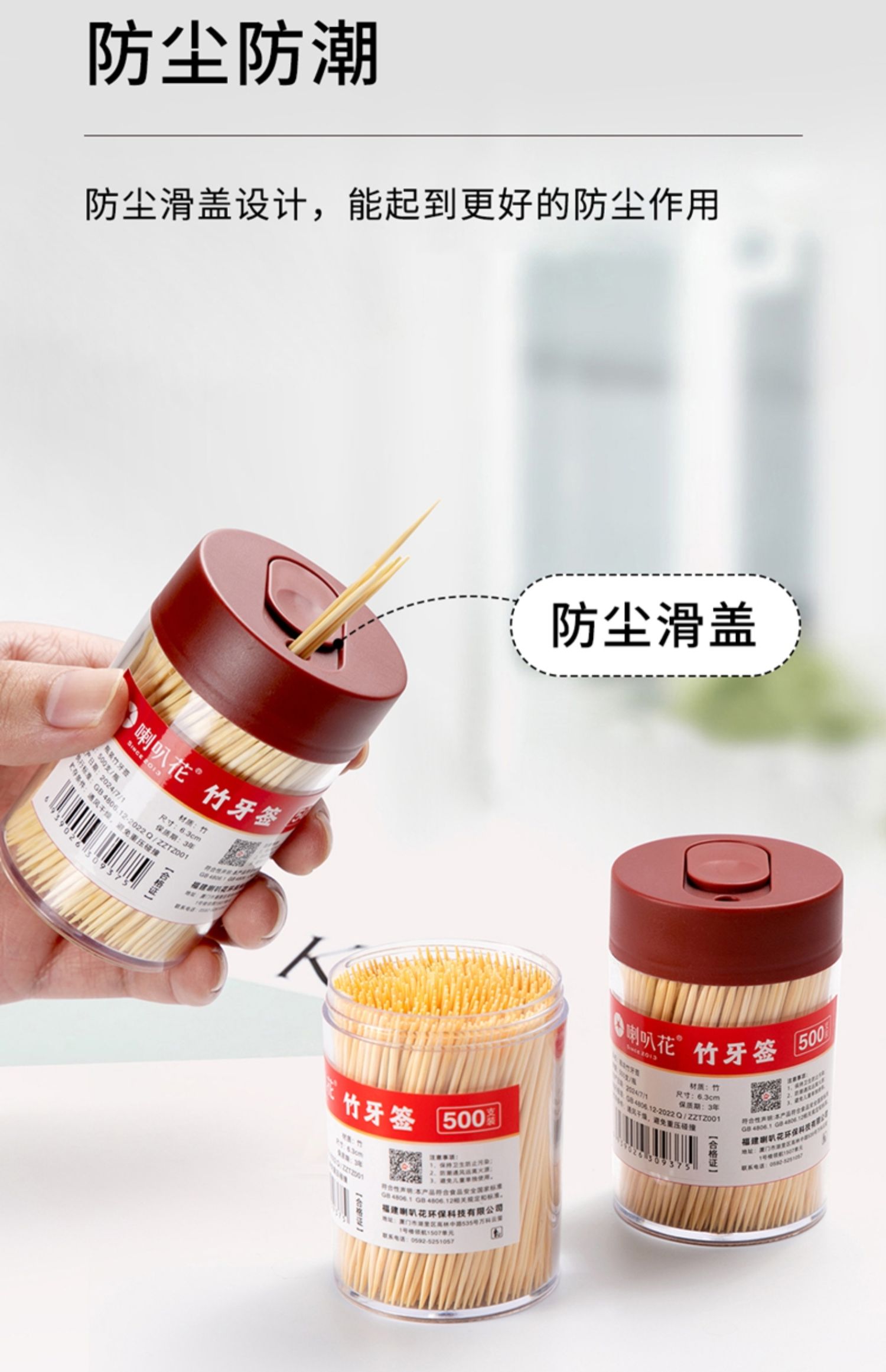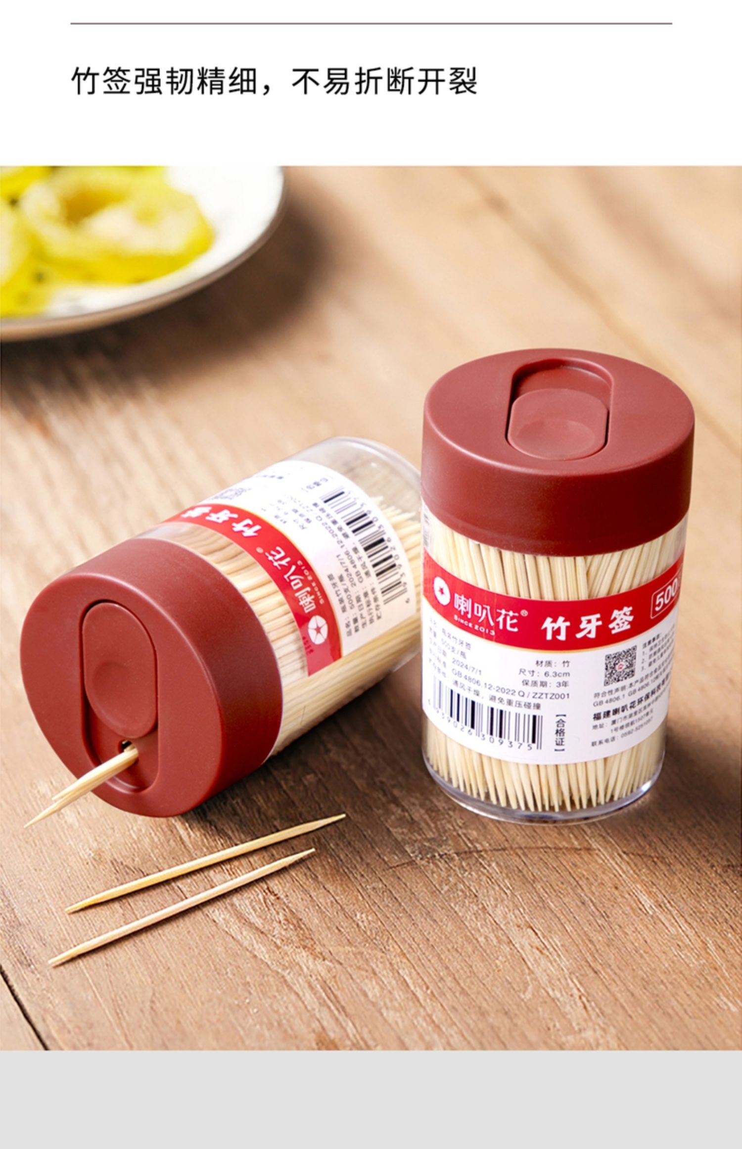 喇叭花竹牙签家用一次性竹签盒装酒店餐厅商用便携细牙签筒双头尖