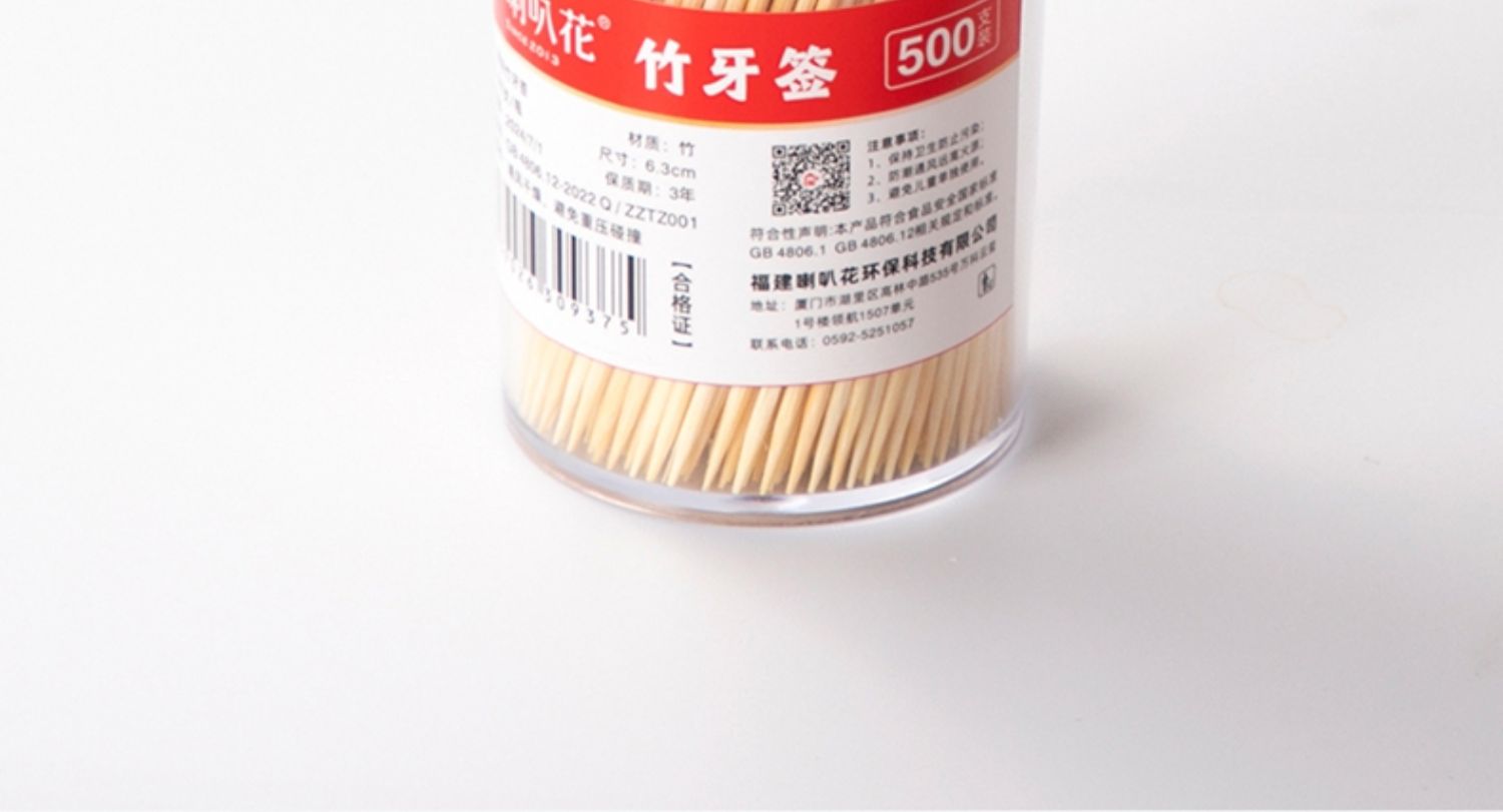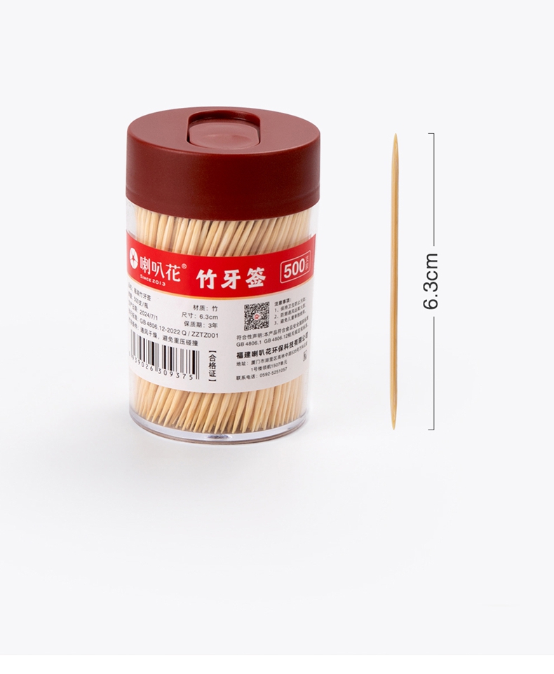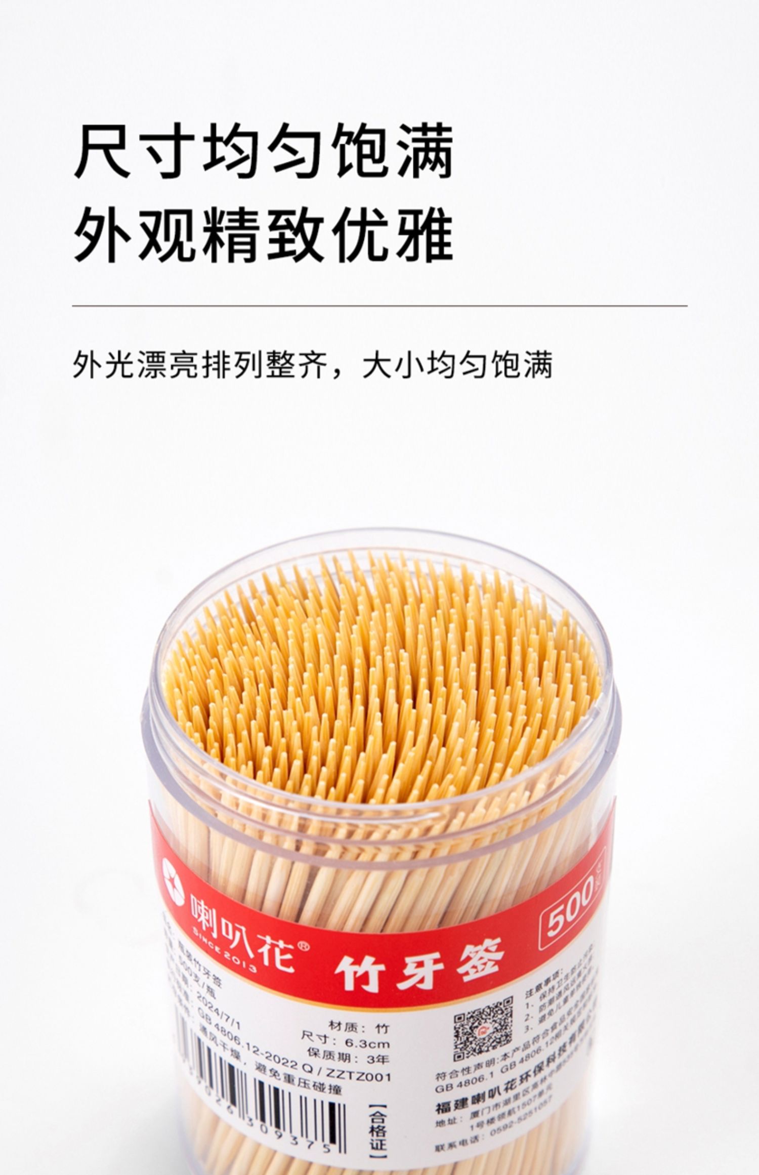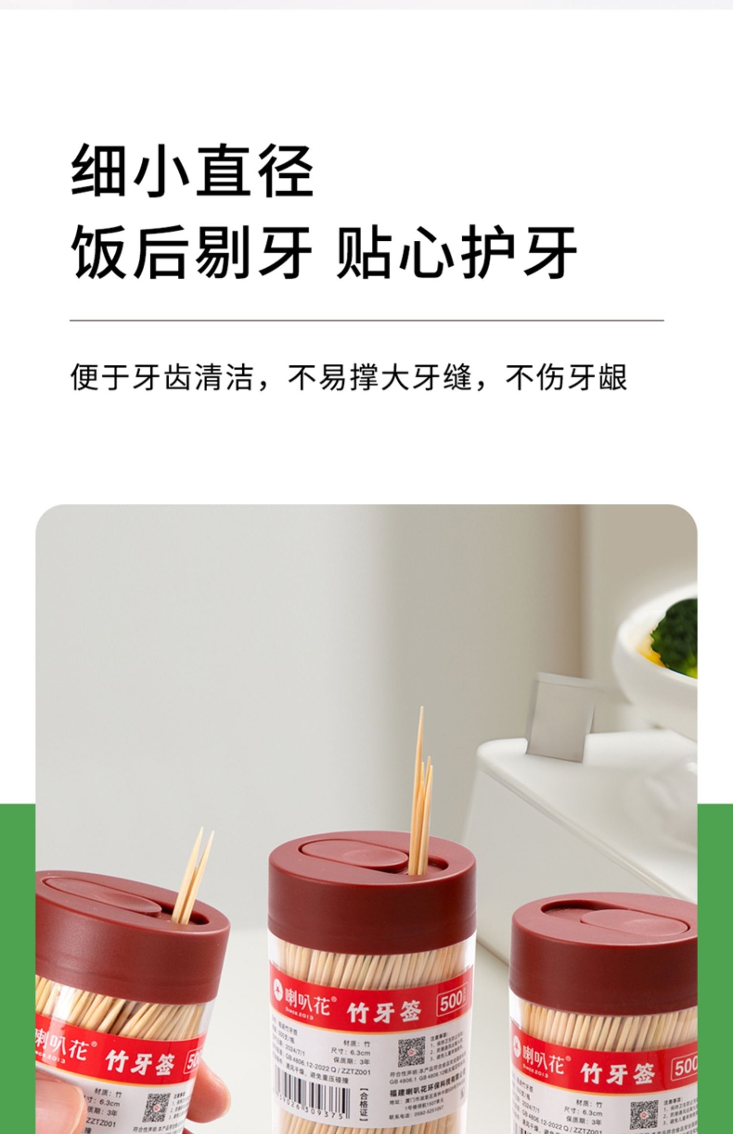 喇叭花竹牙签家用一次性竹签盒装酒店餐厅商用便携细牙签筒双头尖