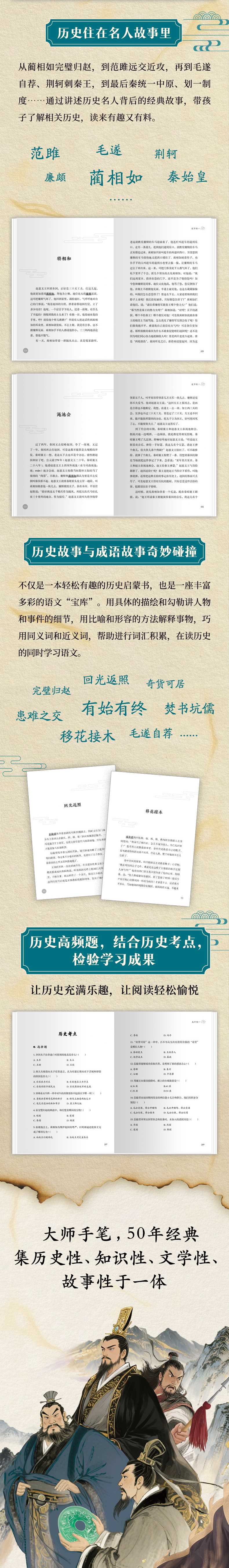 ★辅助语文学习,积累文史知识:用具体的描绘和勾勒讲人物和事件的细节,用比喻和形容的方法解释事物,巧用同义词和近义词,帮助进行词汇积累,在读历史的同时学习语文。