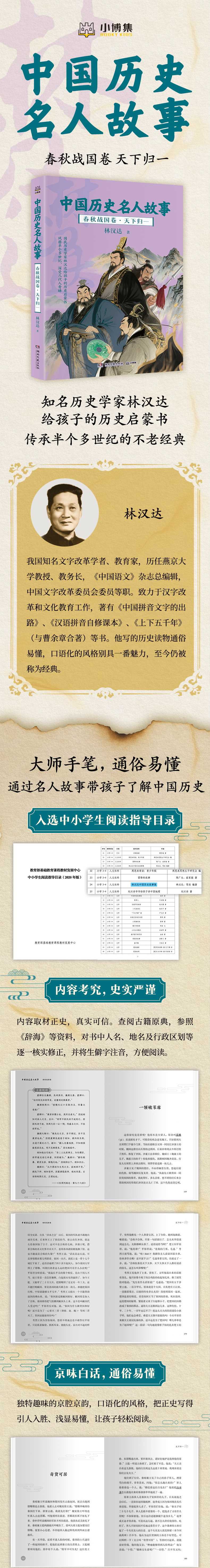 本系列是我国著名教育家、语言学家、翻译家和通俗读物作家林汉达先生写给大众的通俗历史普及读物,全系列用143个故事讲述春秋战国时期的历史名人故事,特别订正了人名、地名及行政区划等知识性错误,将生僻字注音,并增加了古籍链接拓展,拓展文学知识面。