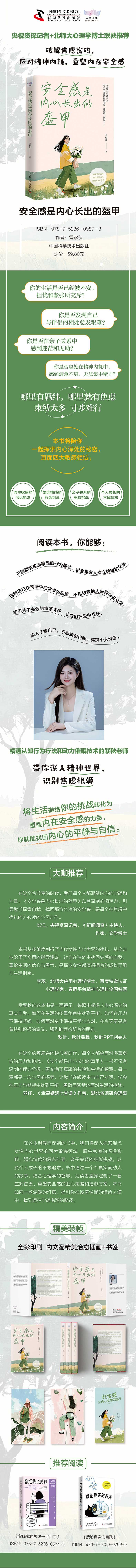 【媒体评论】1.在这个快节奏的时代,我们每个人都渴望内心的宁静和力量。《安全感是内心长出的盔甲》以其深刻的洞察力,引导我们探索自我,找回那份久违的安全感,是每个在焦虑中挣扎的人的心灵之作。 长江,央视资深记者、《新闻调查》主持人、作家、文学博士2.本书从多维度剖析了当代女性内心世界的挣扎,从全方位给予了实用的指导建议,让你在迷茫中找回失落的自我,重拾生活的信心与勇气,是每位女性都值得拥有的成长手册与生活指南。 李蕊,北师大应用心理学博士、百度特邀认证心理学家、春雨平台精神心理科全国名医3.雷紫秋的这本书是一面镜子,映照出很多人内心深处的真实自我。如何在生活的多重角色中找到平衡,如何在压力下保持坚韧,如何面对变化保持平常心应对, 在今天更是有着特别积极的意义,强烈推荐给所有的朋友。秋叶,秋叶品牌、秋叶PPT创始人4.在这个纷繁复杂的快节奏时代,每个人都会面对多重身份的压力和挑战,《安全感是内心长出的盔甲》一书不仅有深刻的理论分析,更充满了真挚的共鸣和生活的智慧。每一章都是一次心灵的探索,让我们在阅读中与自己对话,学会在压力与期望中找到平衡,勇敢且智慧地面对生活的挑战。 羽仟,《幸福婚姻七堂课》作者、湖北省婚研会理事