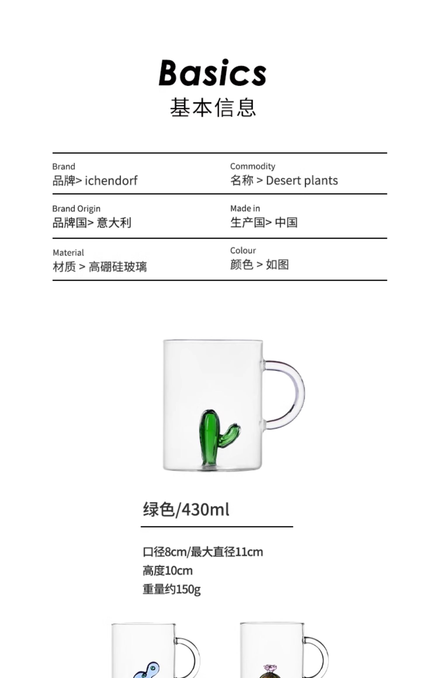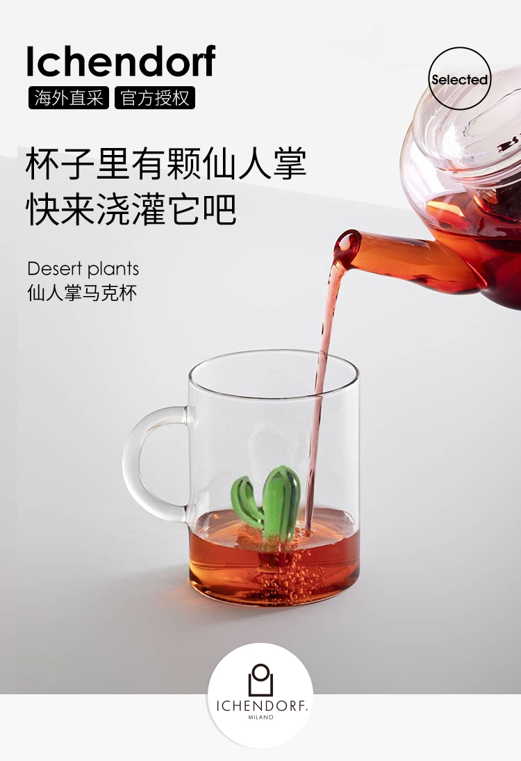 【芳姐】ICHENDORF 仙人掌系列 意大利进口手工立体花型耐热玻璃水杯