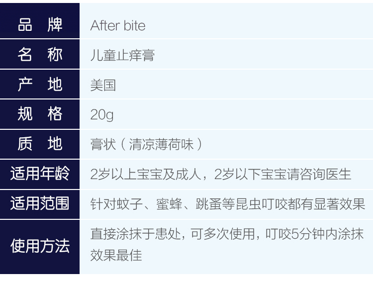 【一般贸易】美国 After Bite 婴幼儿蚊虫叮咬止痒膏 20g