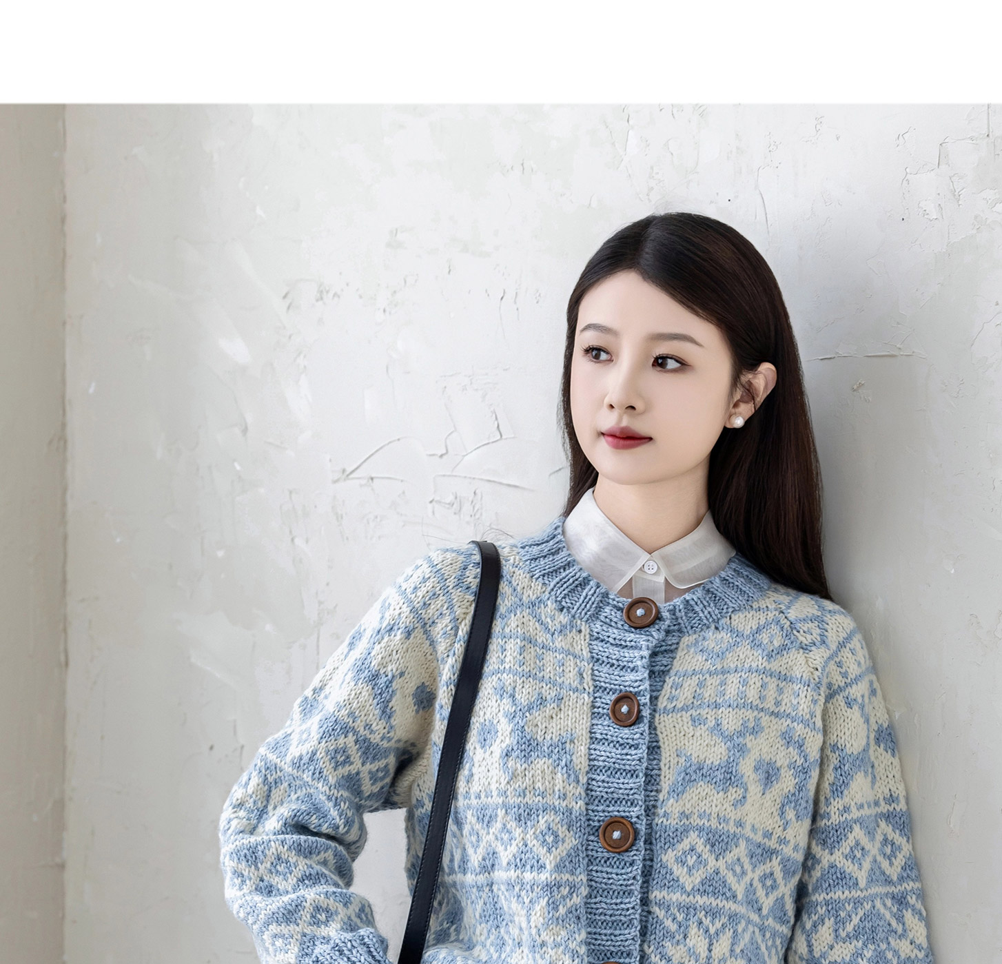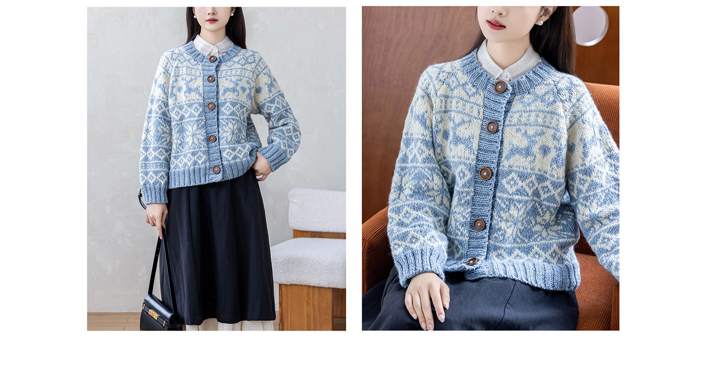 苏苏姐家雪原提花开衫手工DIY编织棒针羊毛毛线团自制材料包