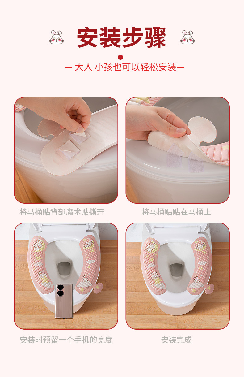 【4对只要19.9!高品质EVA卡通防水马桶垫】家家户户的刚需用品,可爱马桶垫一擦即净,坐垫粘贴式四季通用坐便垫卡通马桶套防水马桶贴QQ