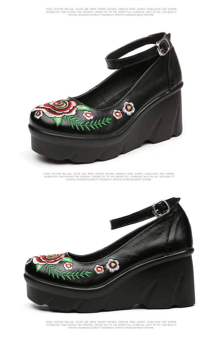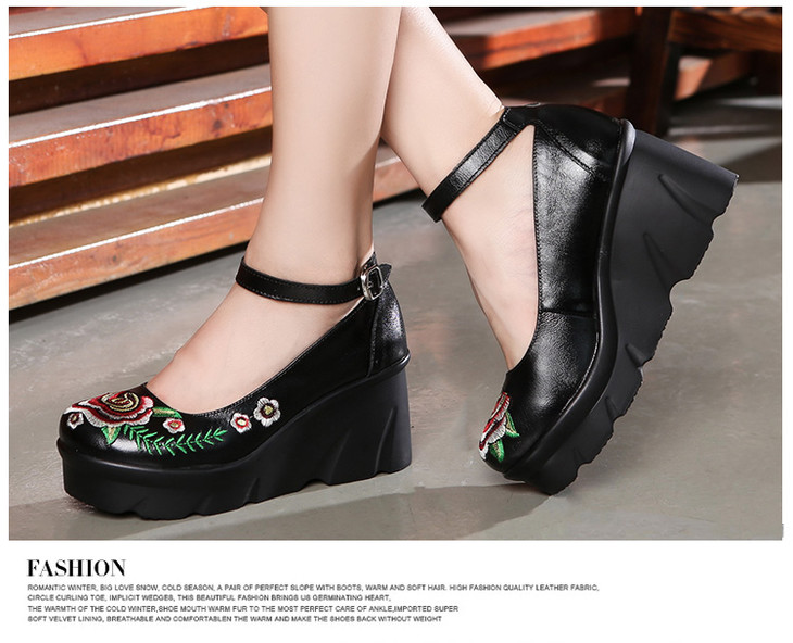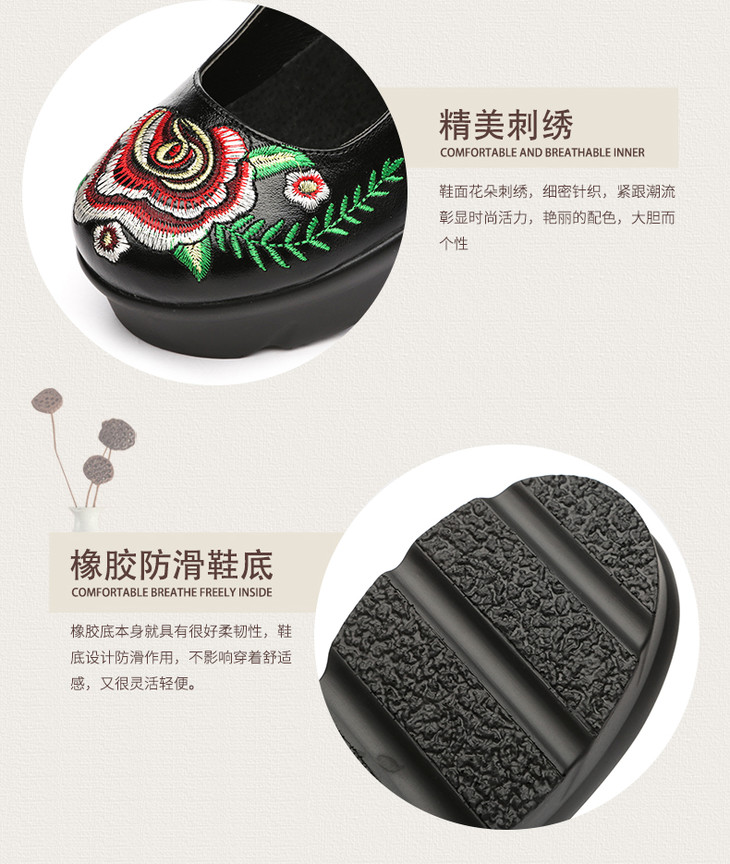 【服饰鞋包】嫔妃丽人民族风春夏花朵高跟女式中国风复古休闲高跟妈妈单鞋