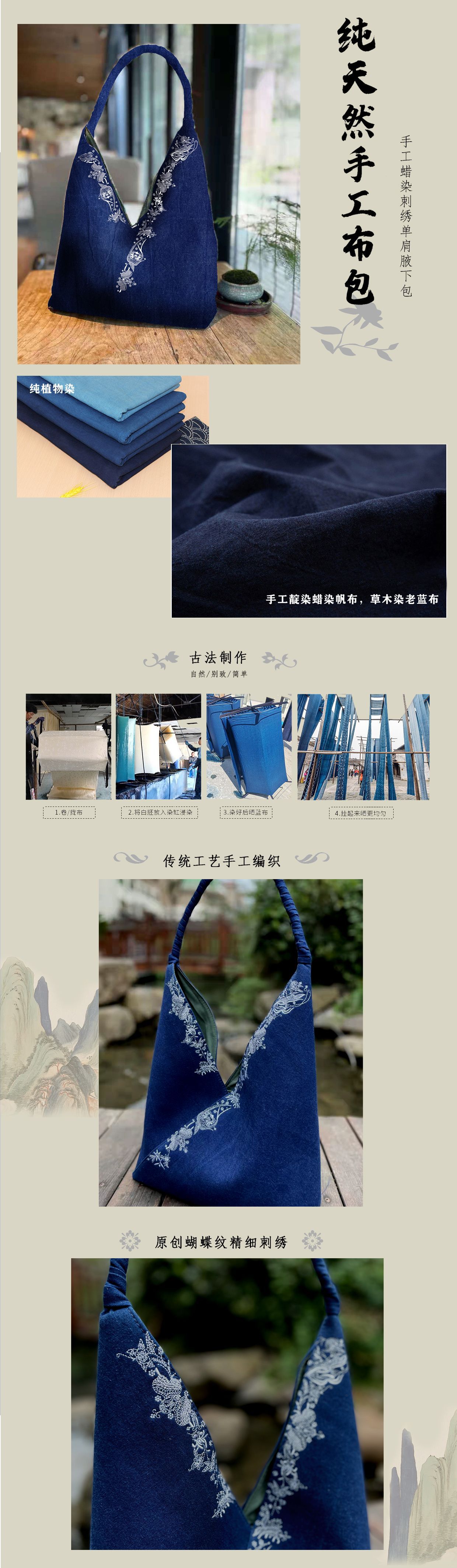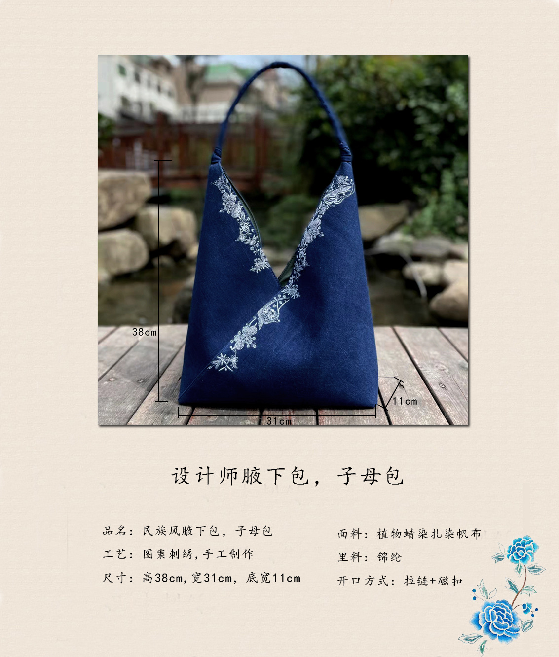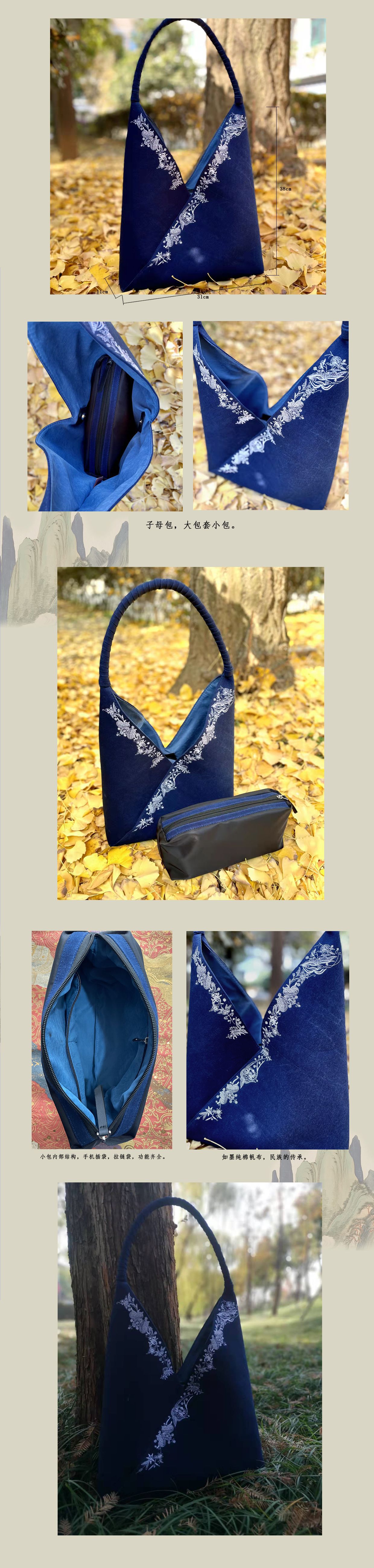 【预售3天】复古原创手工扎染刺绣古风汉服帆布子母包民族风包女YWV03