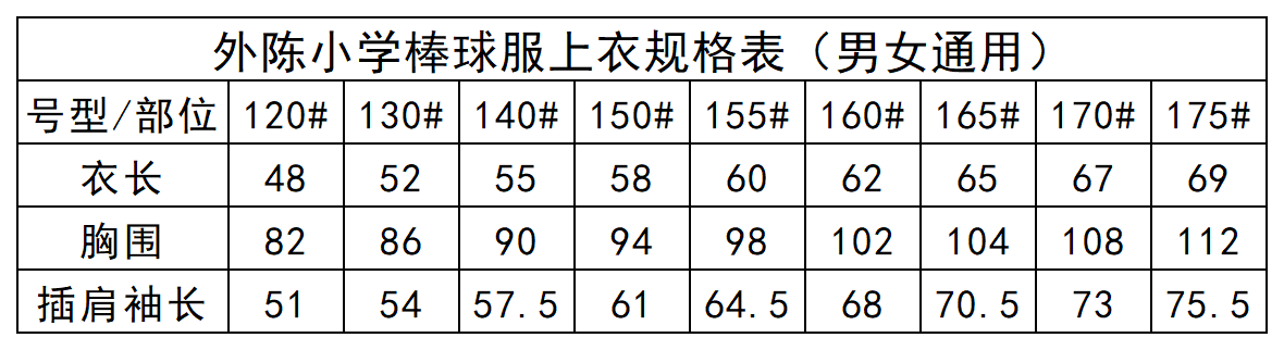 外陈小学——棒球服上衣