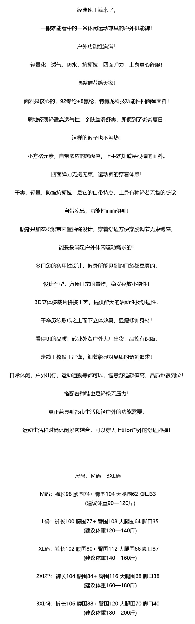 【NSN2401】轻量化男子春夏速干亲肤透气长裤!!
