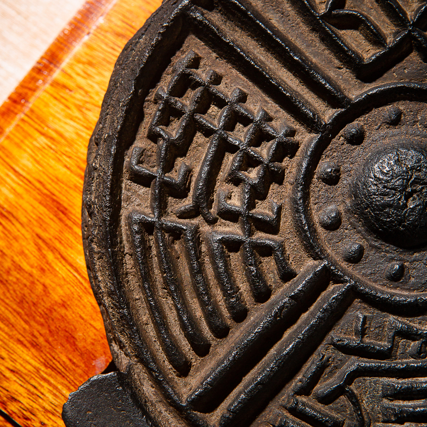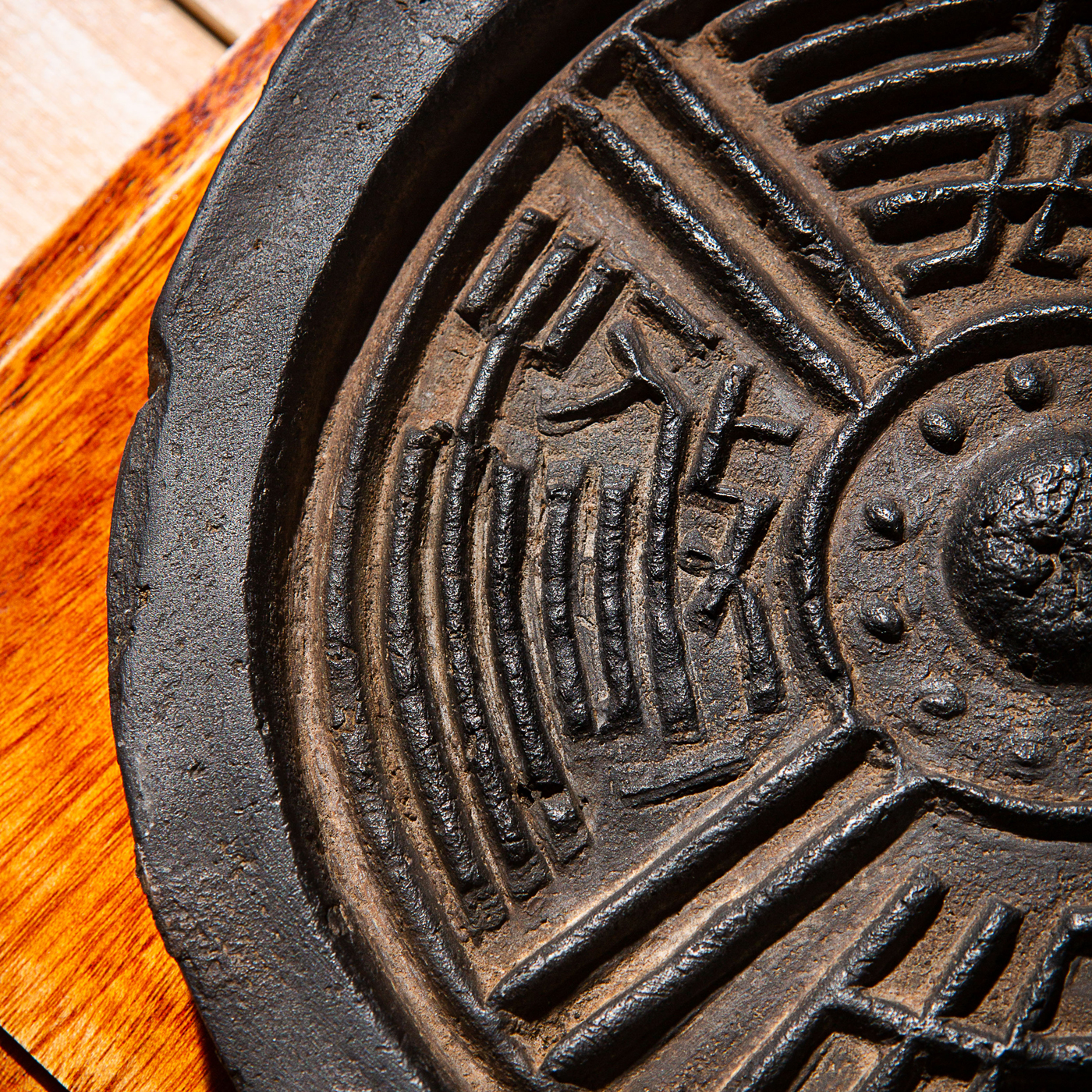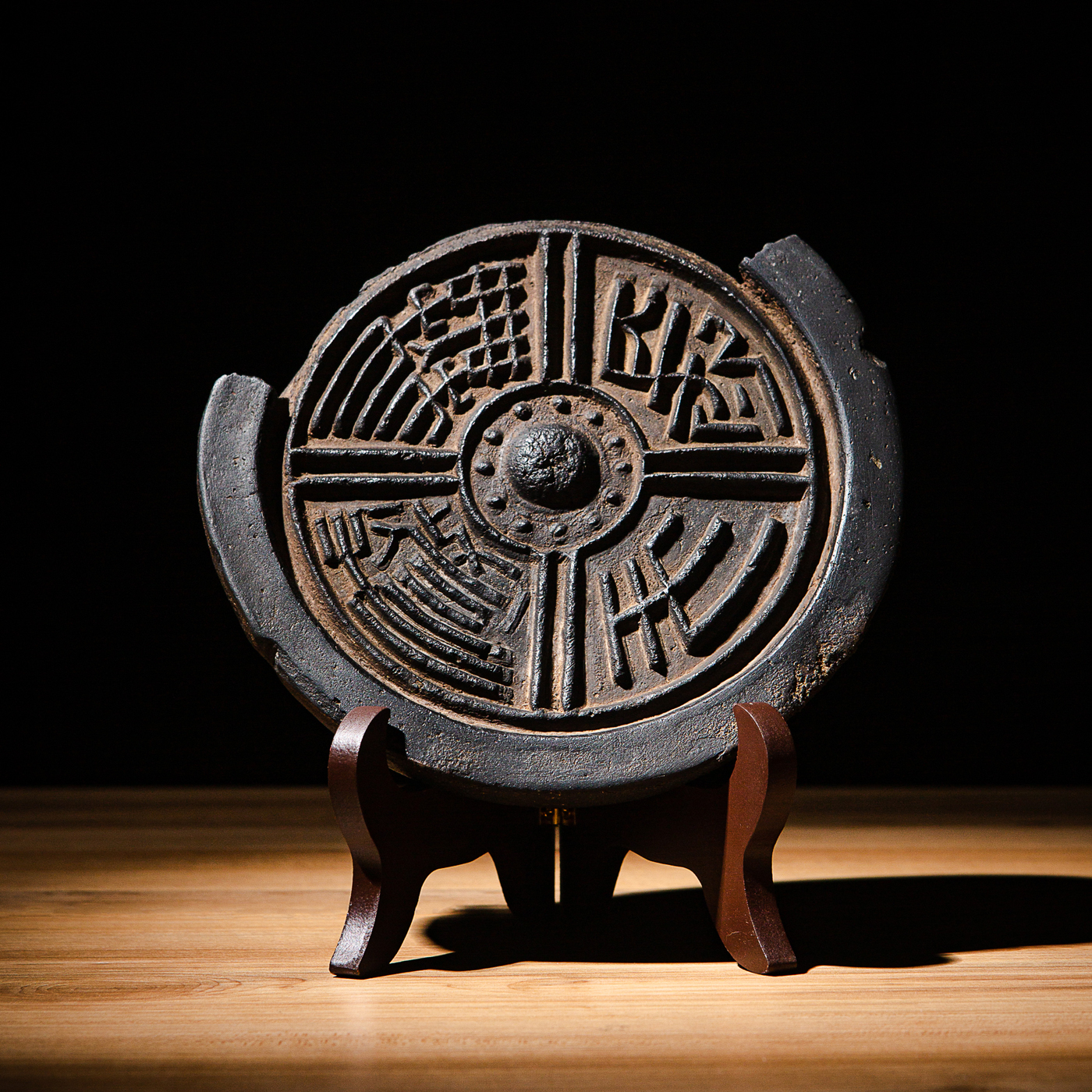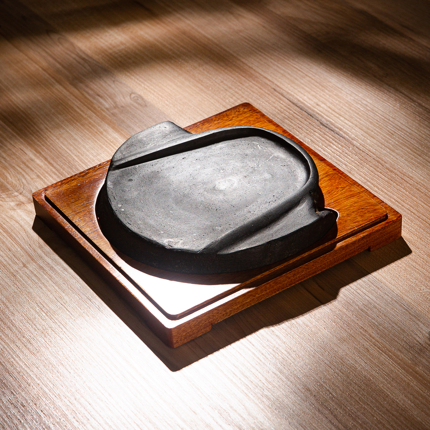 汉代“长生无极”瓦当制砚。其文字精美古拙,字口清晰有力度,胎质坚实细腻,整体呈现古朴之气息,且配有手工精制刻字木盒。