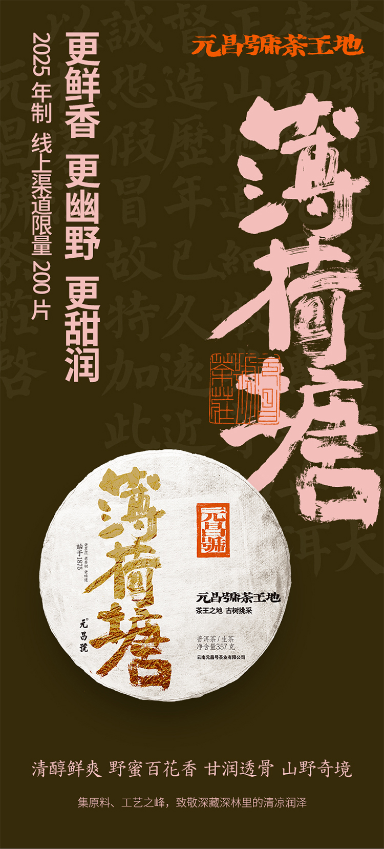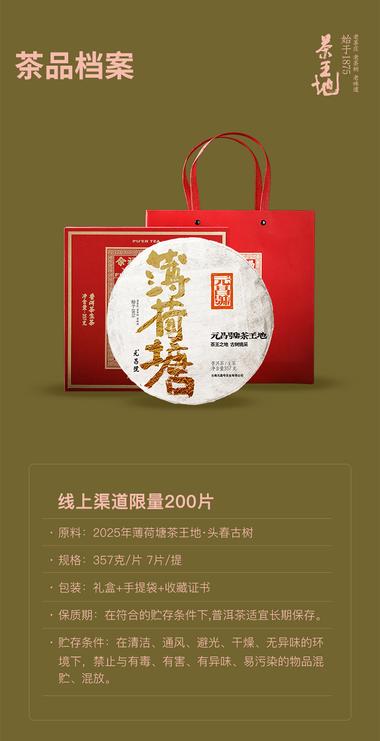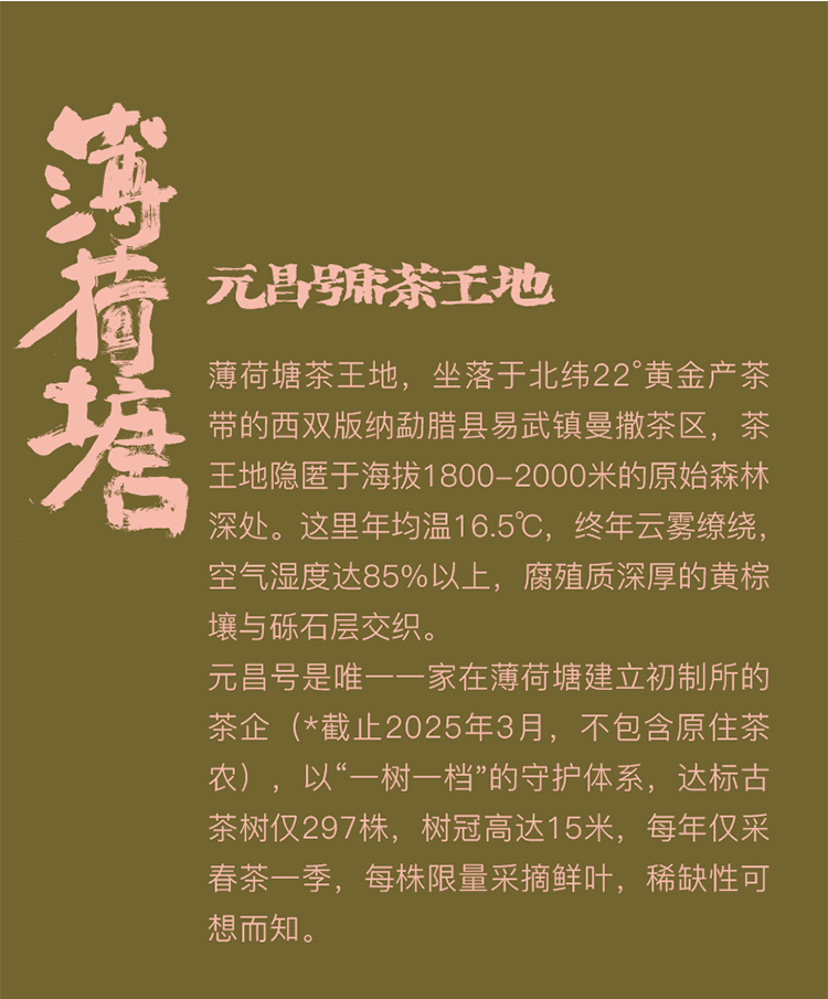【茶王地系列】元昌号2025年薄荷塘古树纯料357克生饼