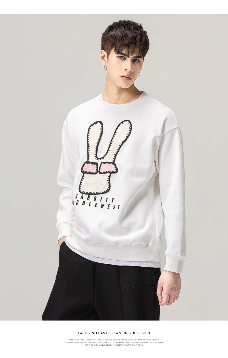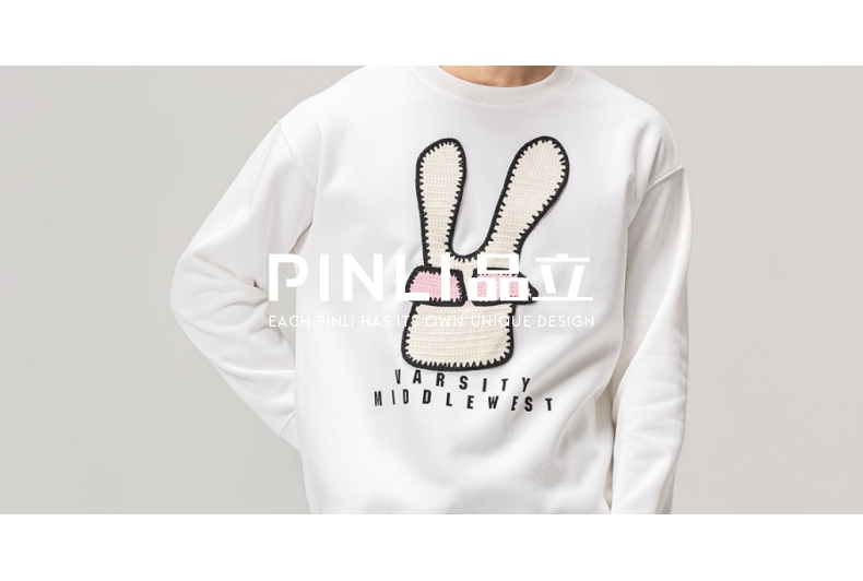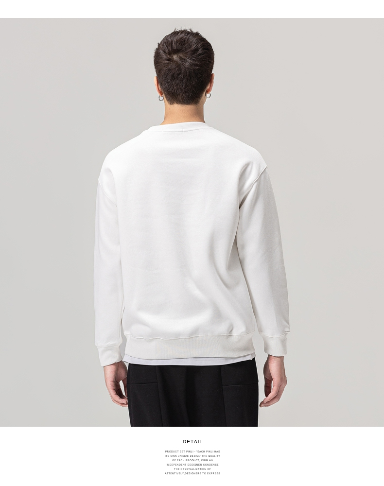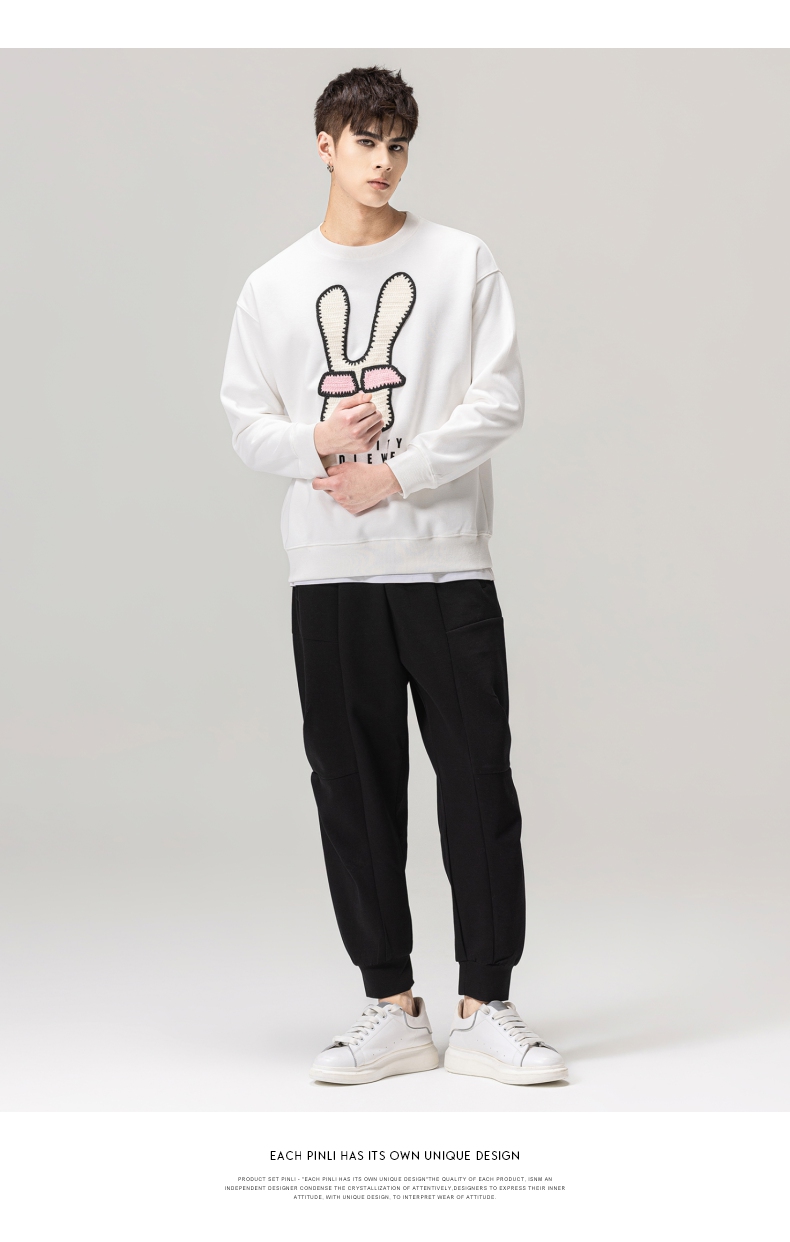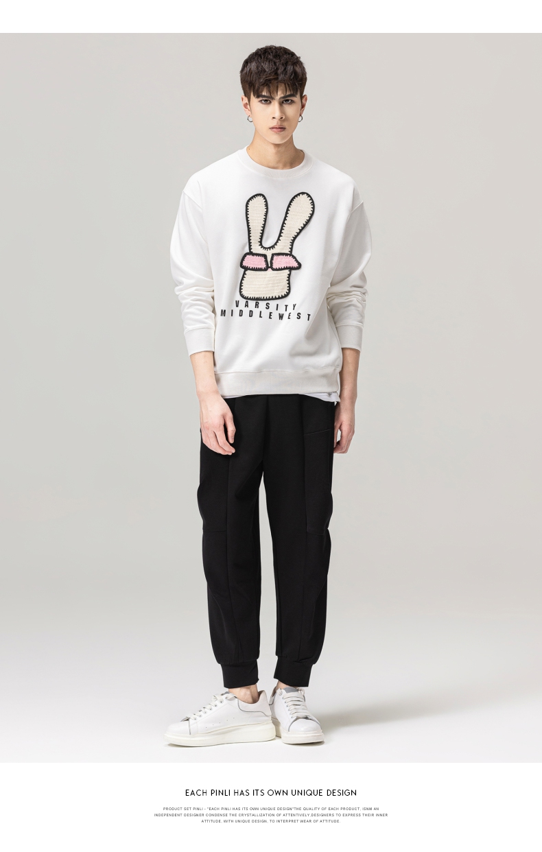 PINLI品立秋装新款男士贴布绣圆领套头休闲卫衣潮BG223309033