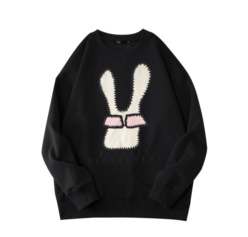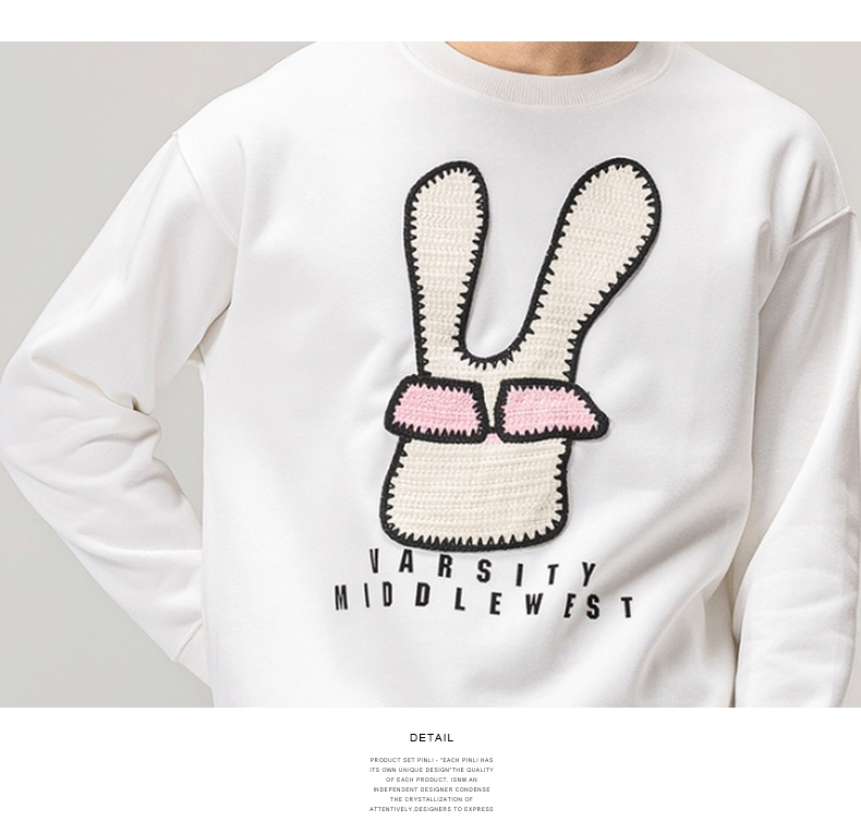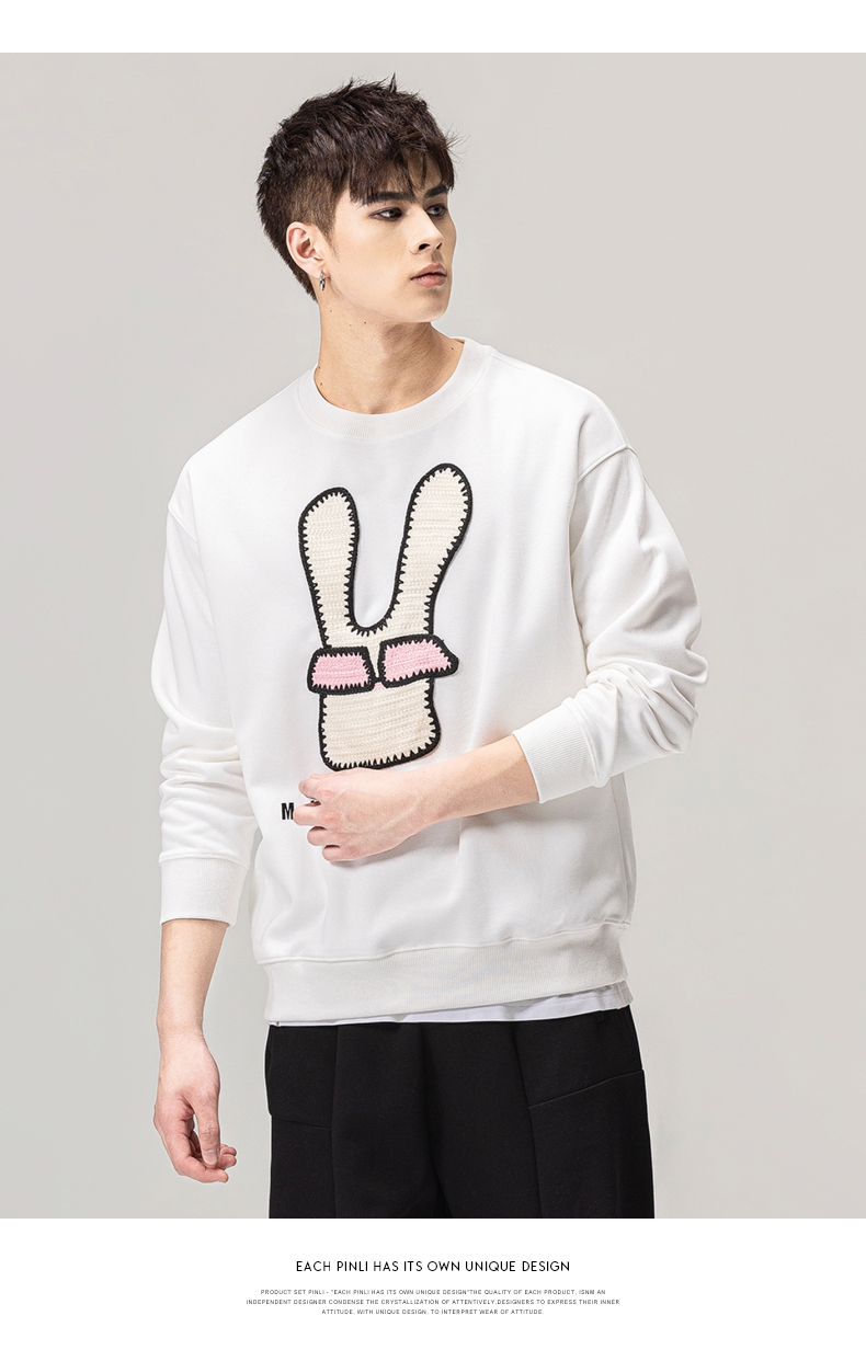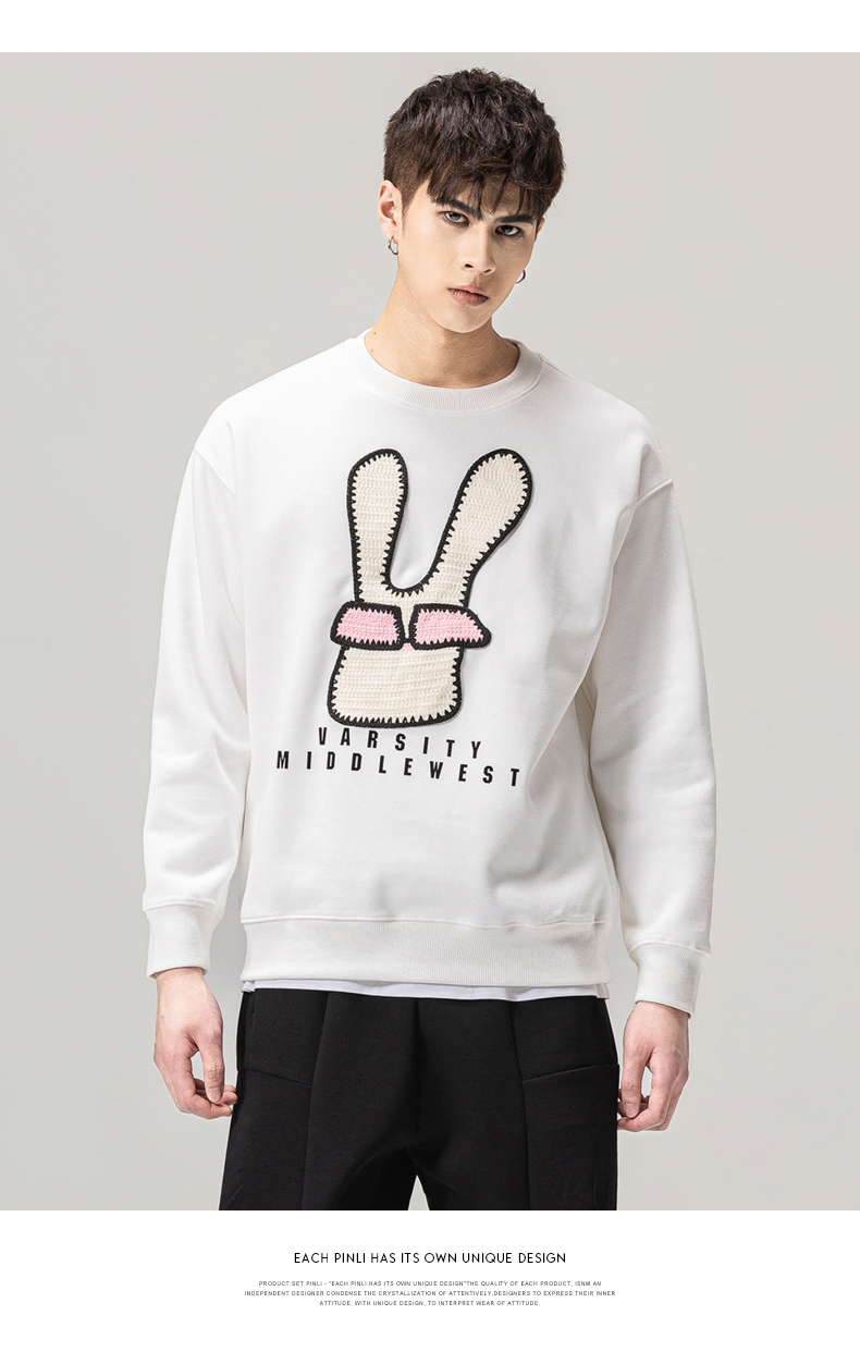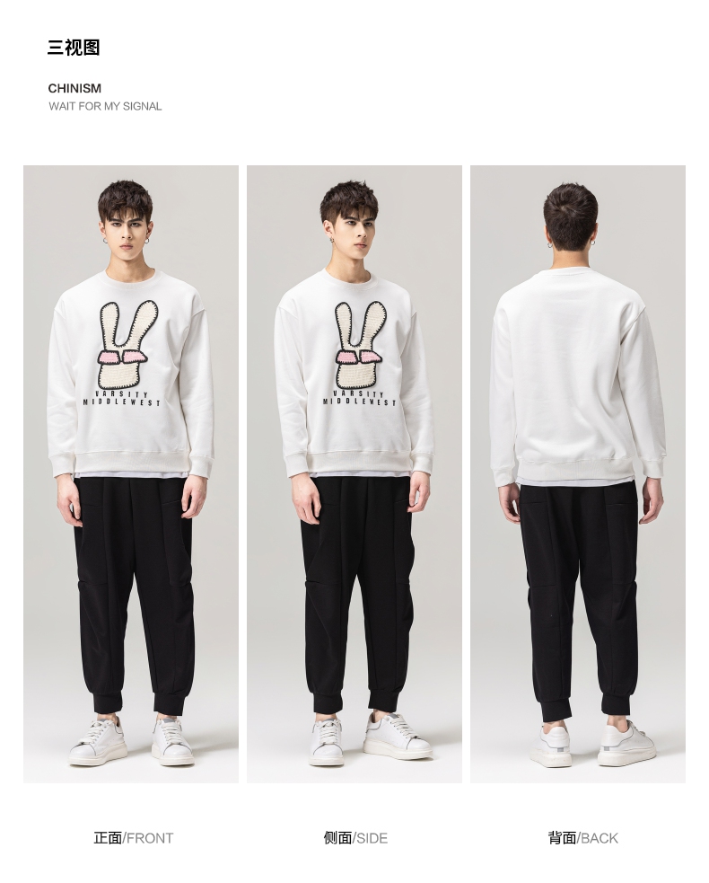 PINLI品立秋装新款男士贴布绣圆领套头休闲卫衣潮BG223309033