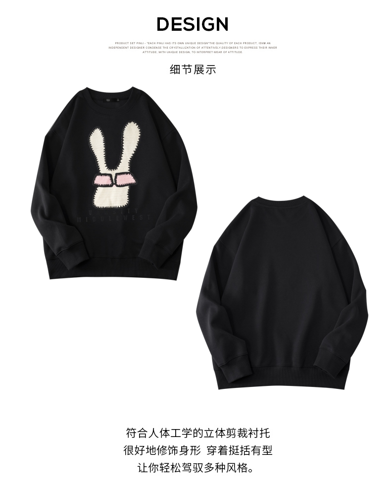 PINLI品立秋季新款男士圆领烫钻笑脸休闲套头卫衣BG223309036