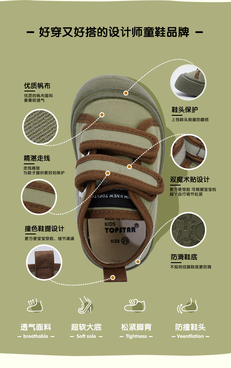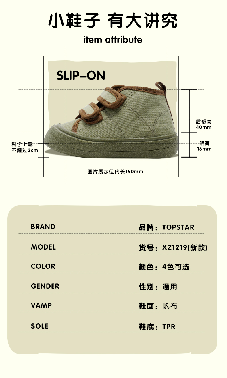 【清仓特价不退不换】TOPSTAR官方儿童小白鞋男女童帆布鞋宝宝室内鞋幼儿园一脚蹬软底1219