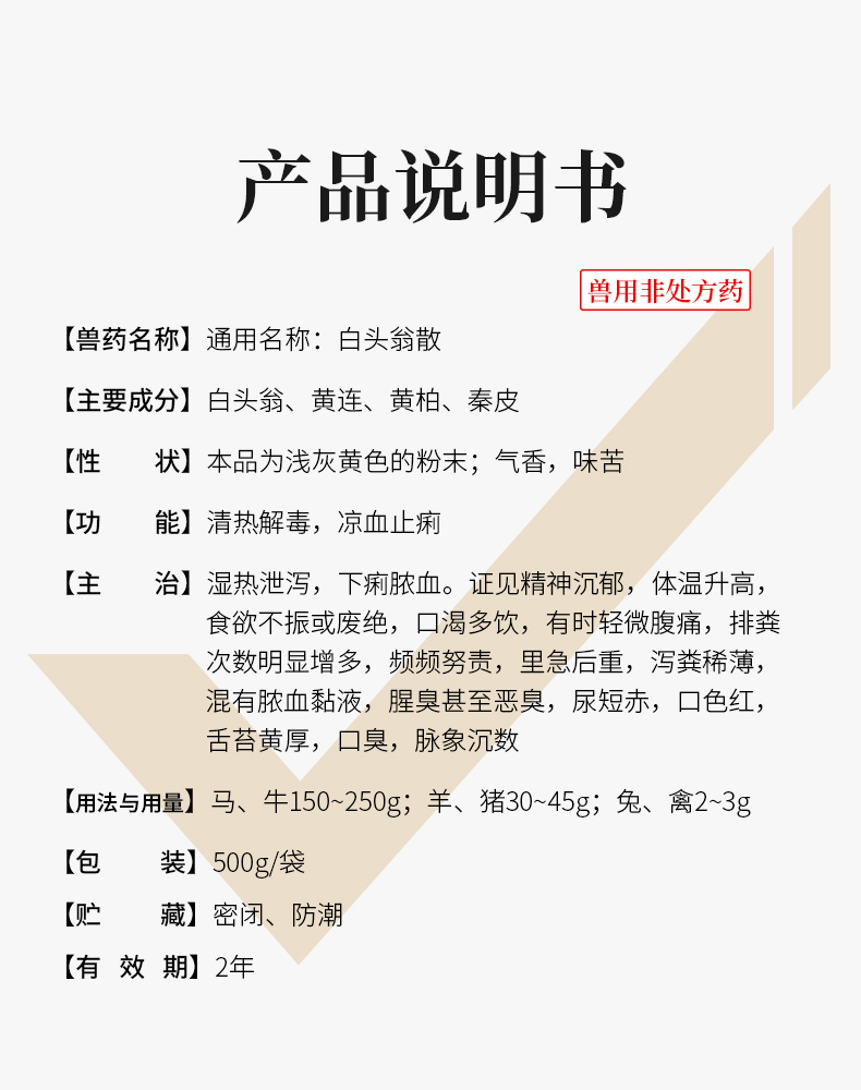 【社群专享】华畜白头翁散兽用痢菌净止痢散猪用牛羊鸡仔猪黄白痢拉稀止泻