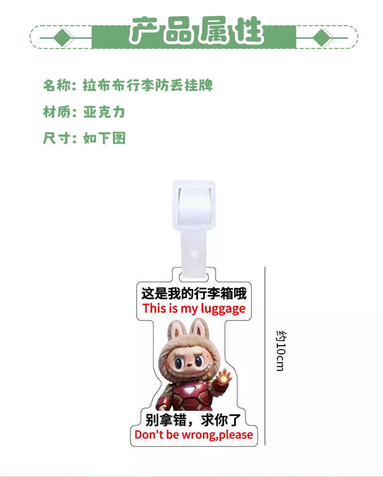 拉布布行李防丢挂牌便携卡通Labubu书包行李箱挂件/个