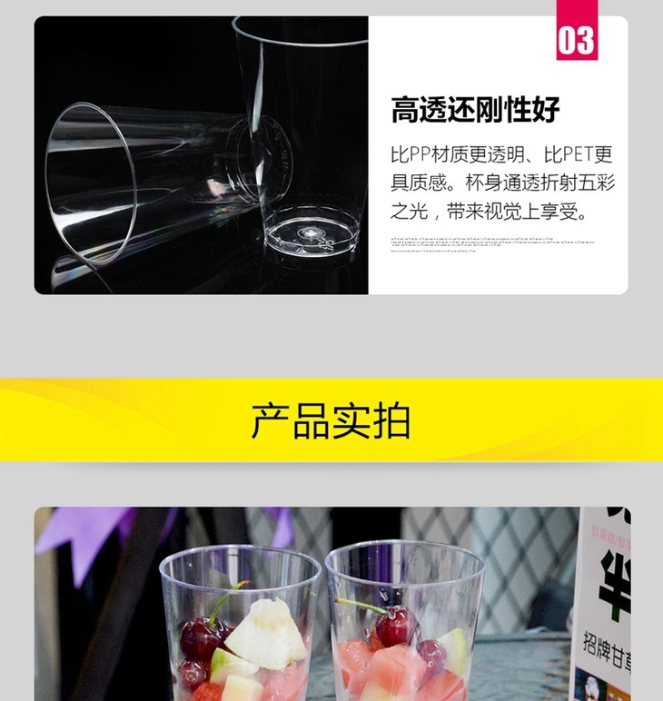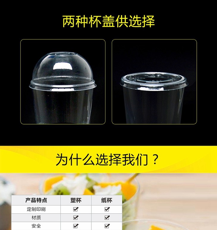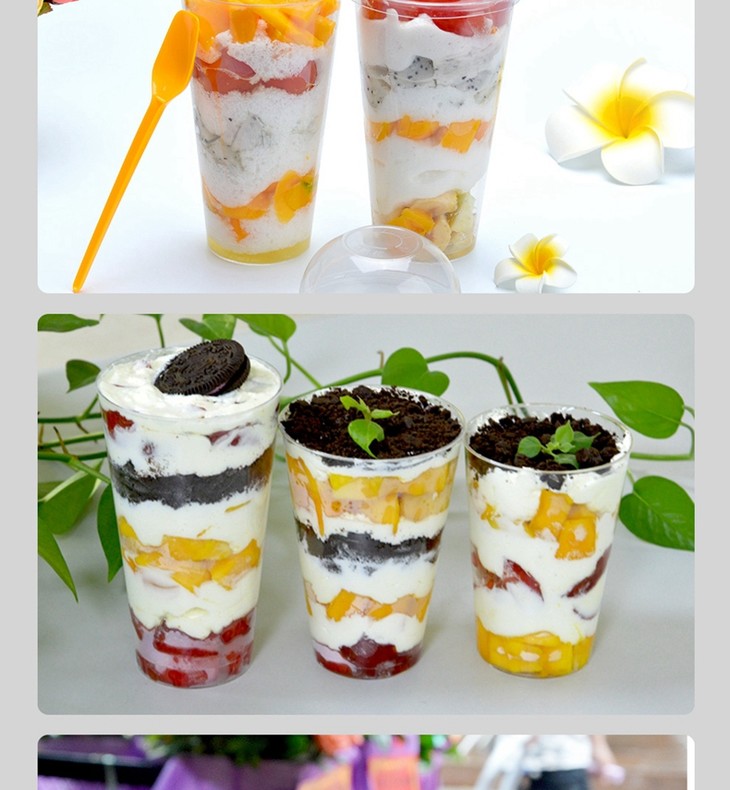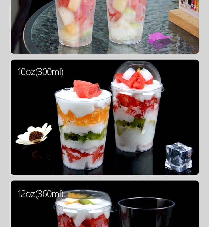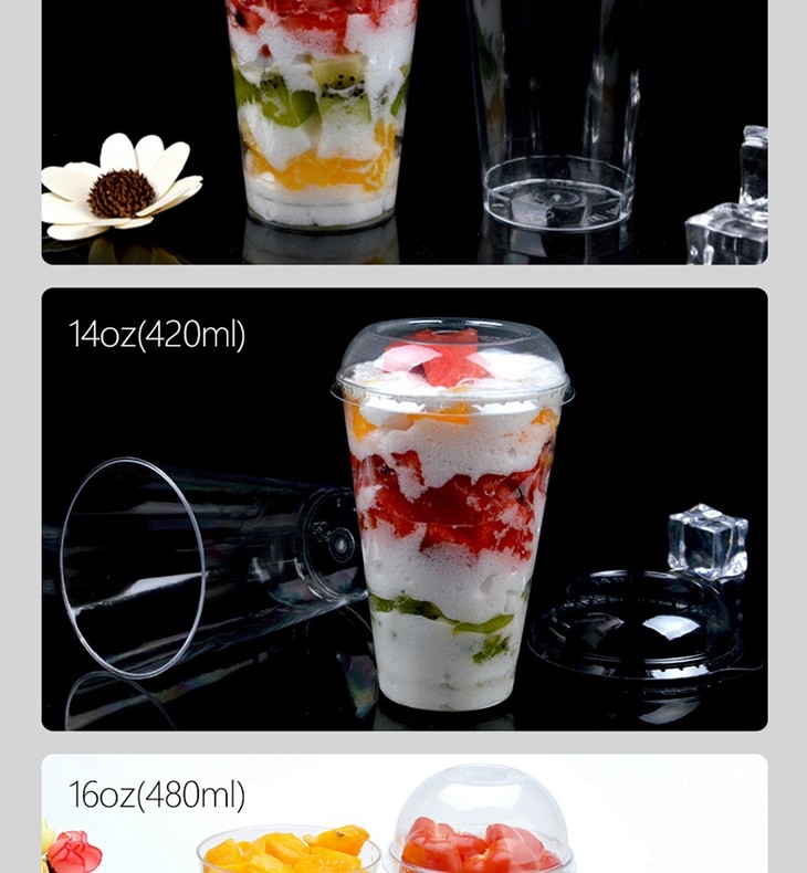喇叭花200/250/480ml一次性杯子硬质塑料千层奶油水果杯带盖500套