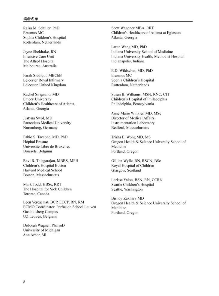 为了提升我国ECMO治疗的系统化、标准化、规范化,中国生物医学工程学会体外循环分会(ChSECC)组织专家翻译了全球体外生命支持组织(ELSO)出版的最新版《ECMO专家培训手册》。本书结合近10年全球ECMO临床积累的丰富经验更新了许多临床实际困难的解决方案,突出了ECMO患者的综合管理要义,是临床一线ECMO管理者不可多得的参考书籍。本书结合近10年全球ECMO临床积累的丰富经验更新了许多临床实际困难的解决方案,突出了ECMO患者的综合管理要义,是临床一线ECMO管理者不可多得的参考书籍。