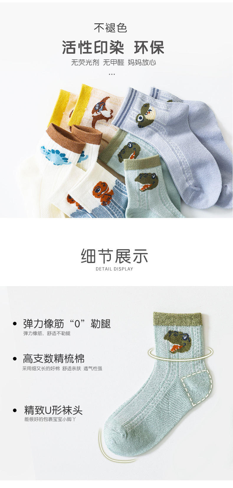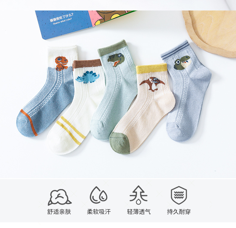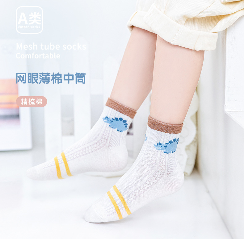 【5双装 轻薄透气 吸汗抗起球】春夏季网眼薄款儿童袜子网袜童袜a类男童女童棉袜短袜