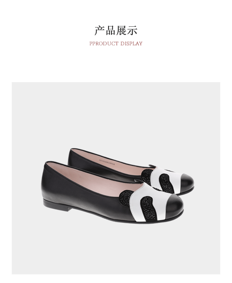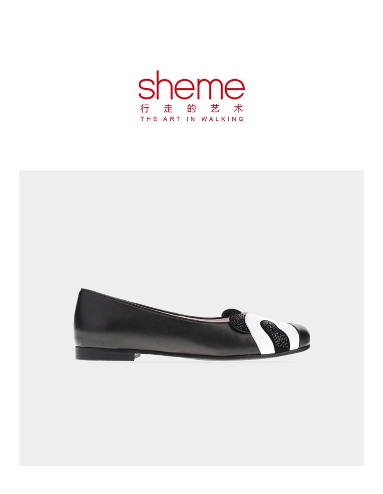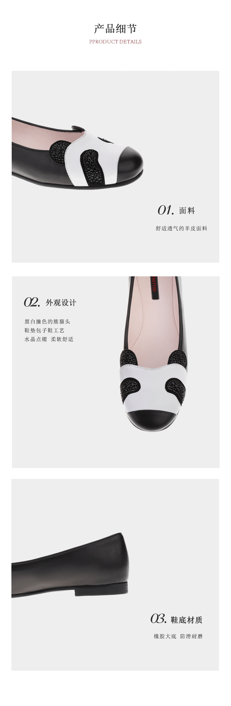 sheme原创设计国宝小白系列熊猫鞋头水晶点缀柔软舒适鞋垫女士单鞋可定