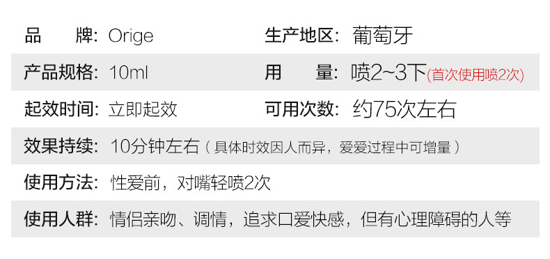 葡萄牙Orgie口爱兴奋喷剂薄荷糖味快感激