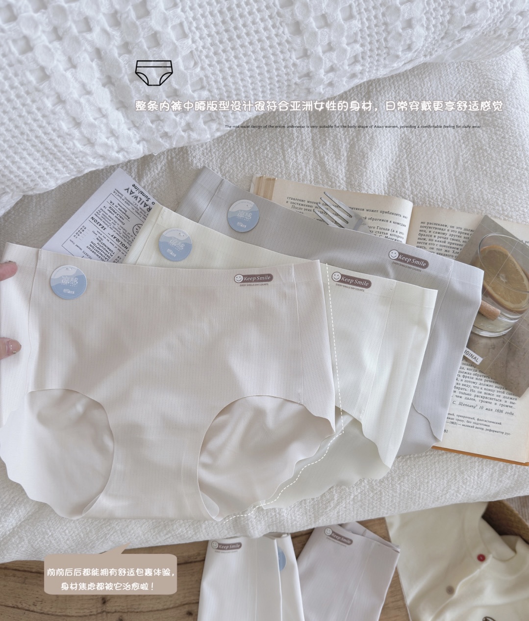 女士内裤凉感无痕内裤一片式中腰简约舒适包臀冰丝三角内裤1295035