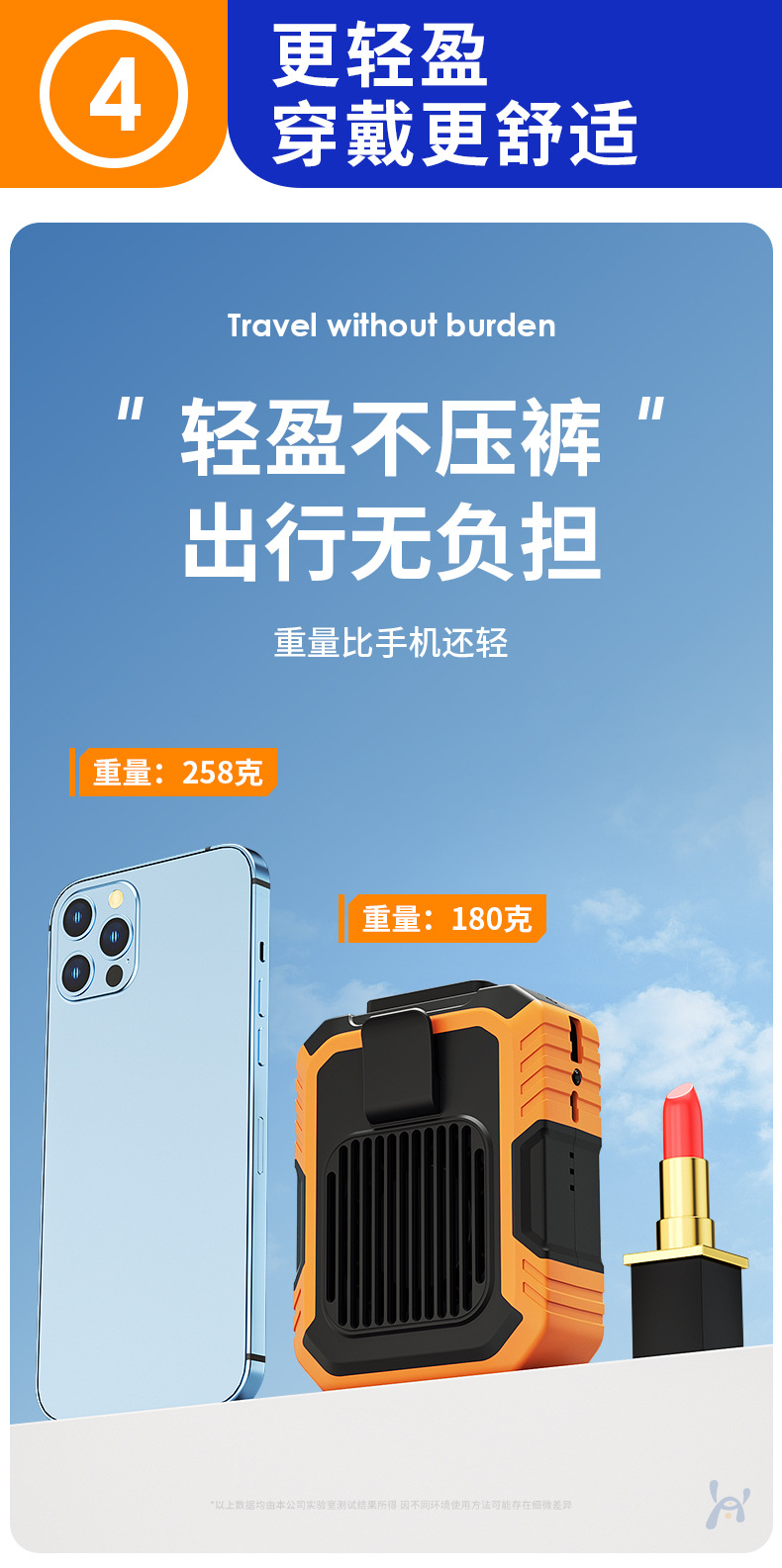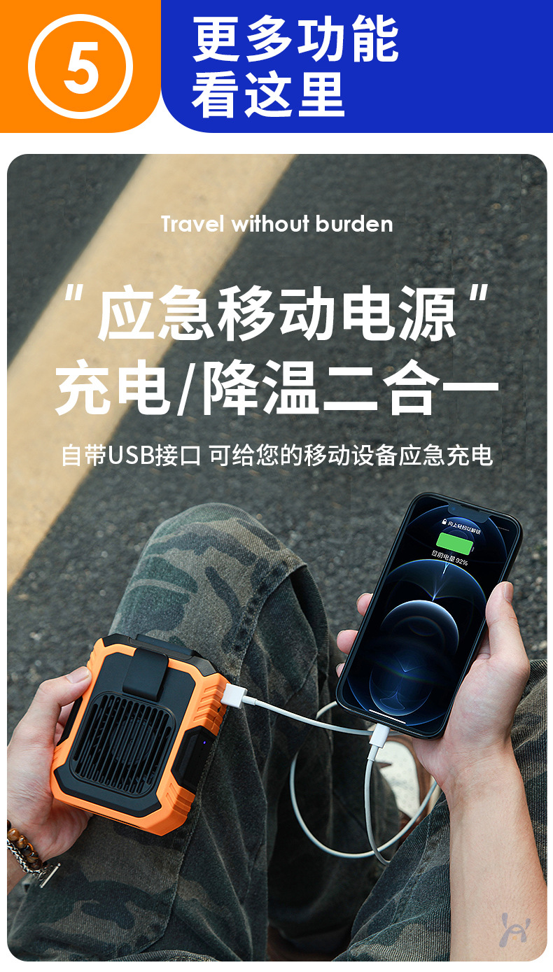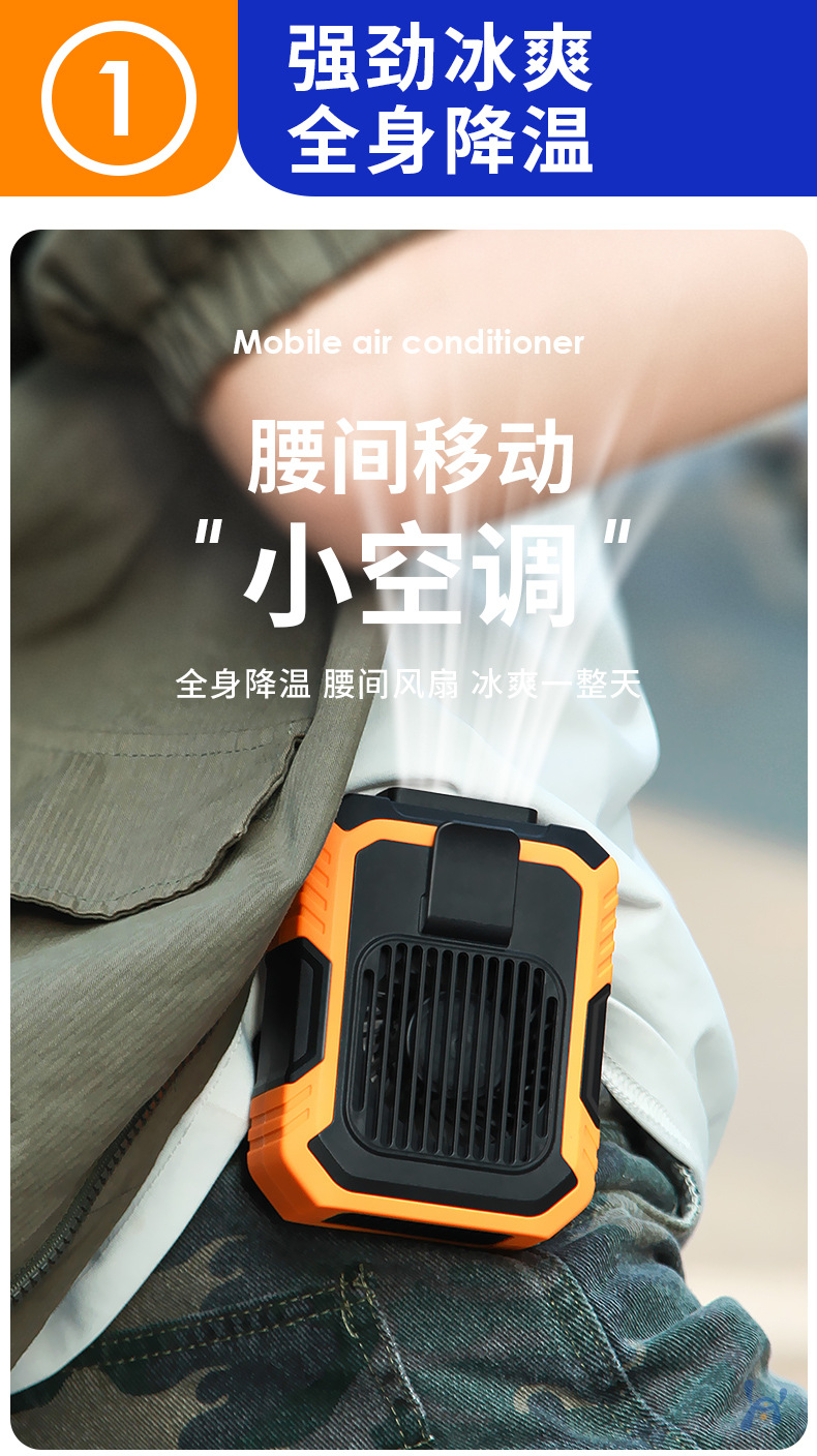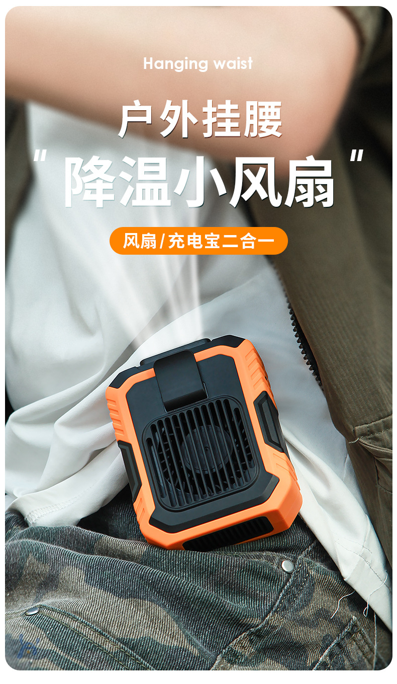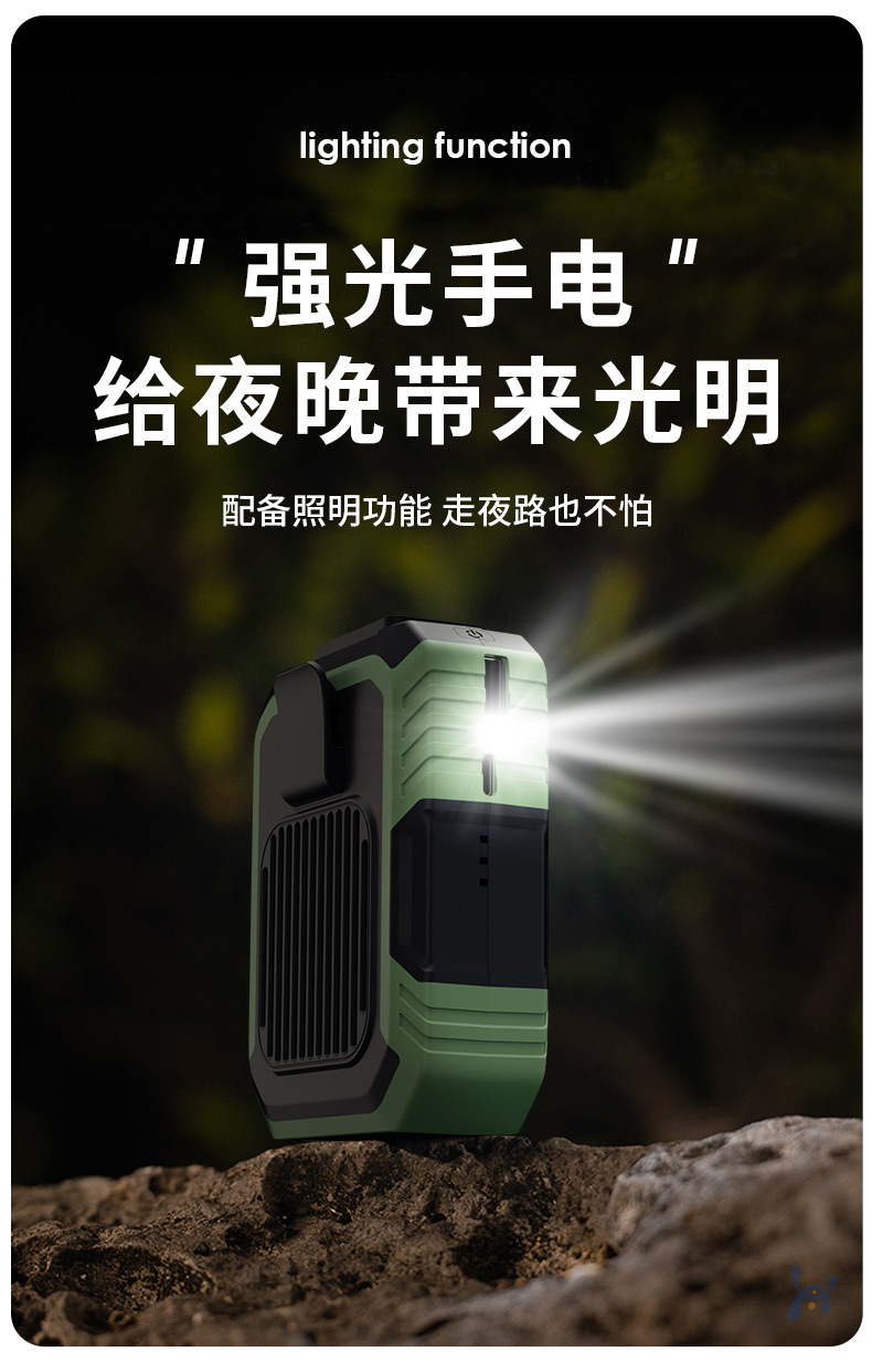 【挂腰“小空调”!持久续航】风扇+充电宝二合一,能当“应急移动电源”,还配备照明功能,堪称户外神器!挂腰风扇USB充电随身便携式手持小风扇工地户外野餐野营钓鱼挂脖风扇