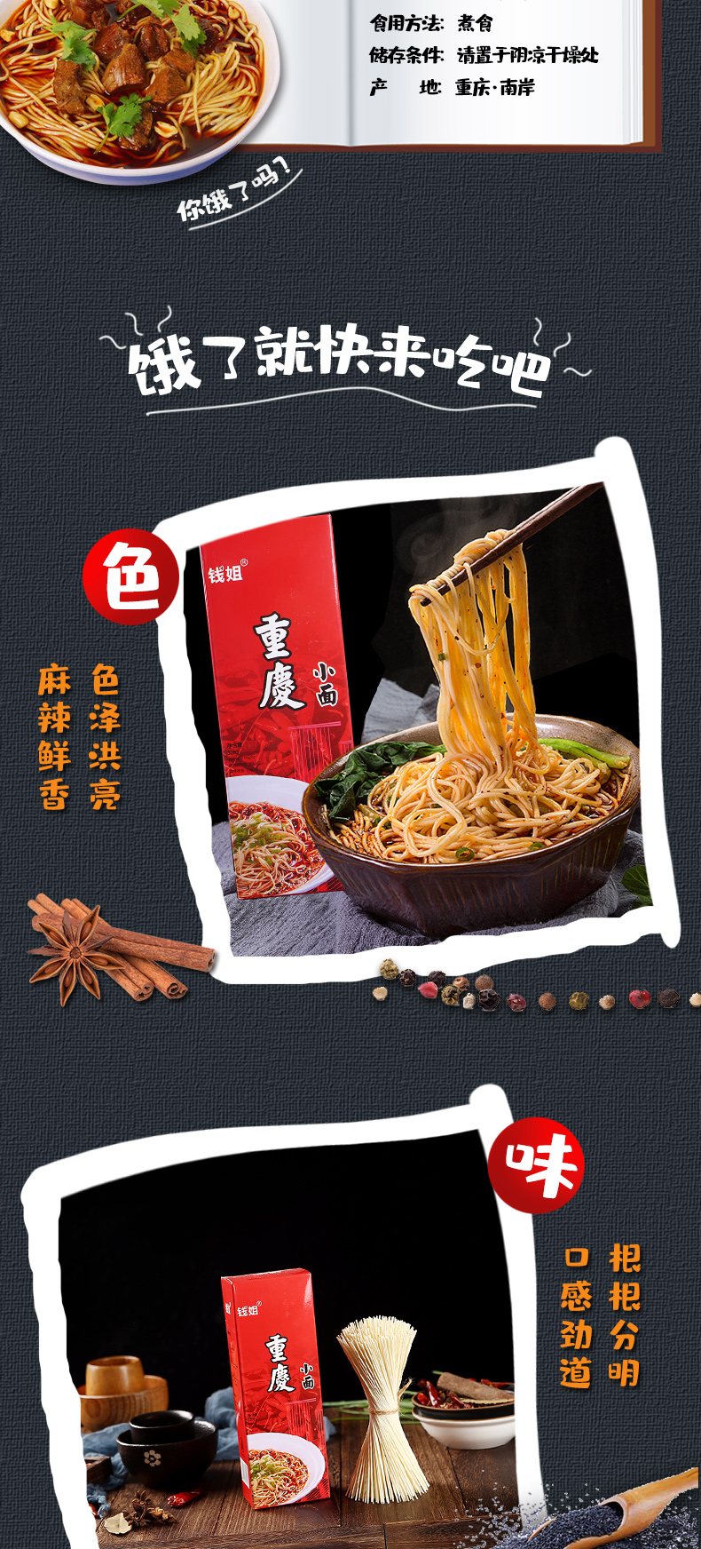 重庆小面钱姐盒装320g自带调料麻辣非油炸拌面手工面条方便面挂面
