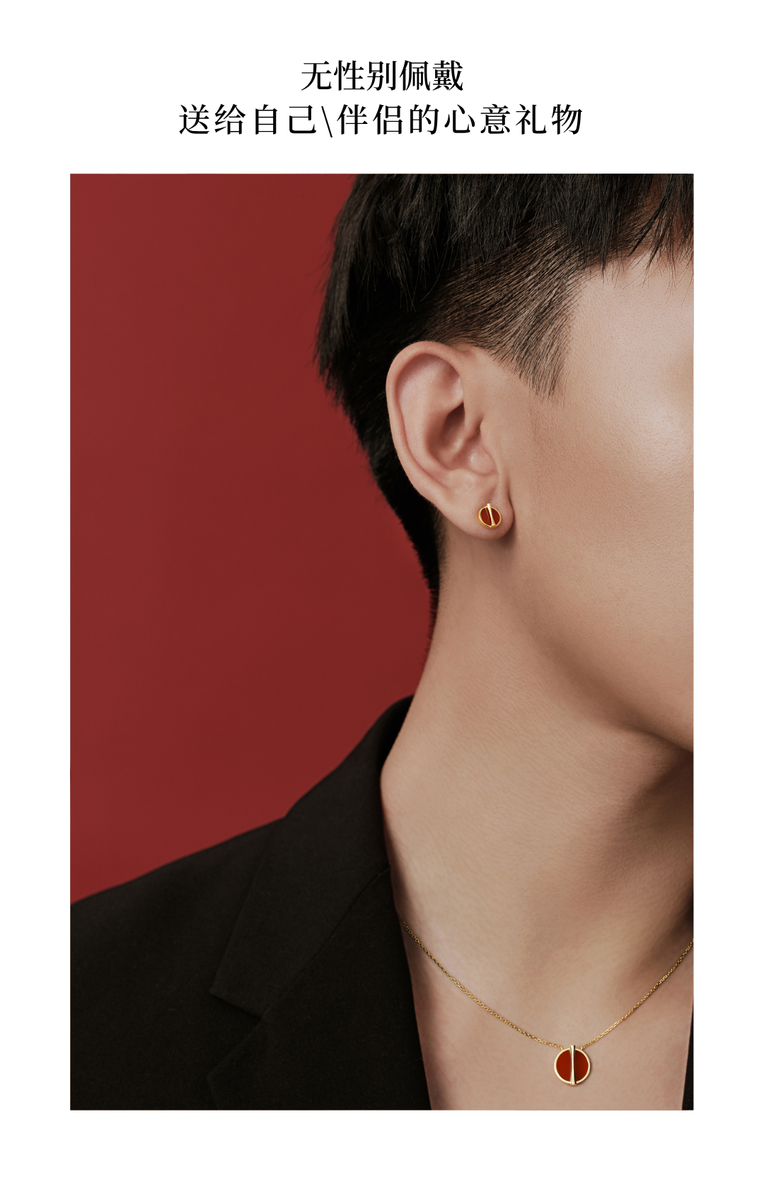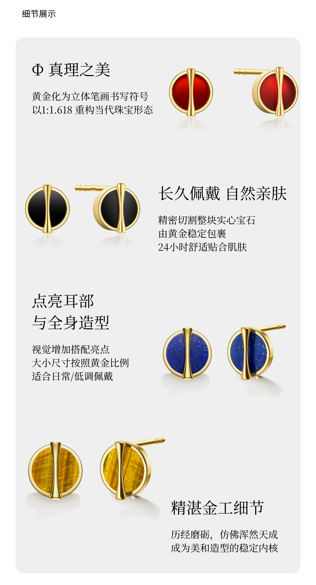 「因」系列 黄金比红玉髓黑玛瑙耳钉