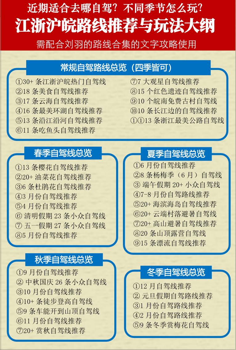 浓缩了全年不同季节、不同月份、不同主题的路线推荐。有了这个推荐,从此再也不用担心不知道去哪玩了!